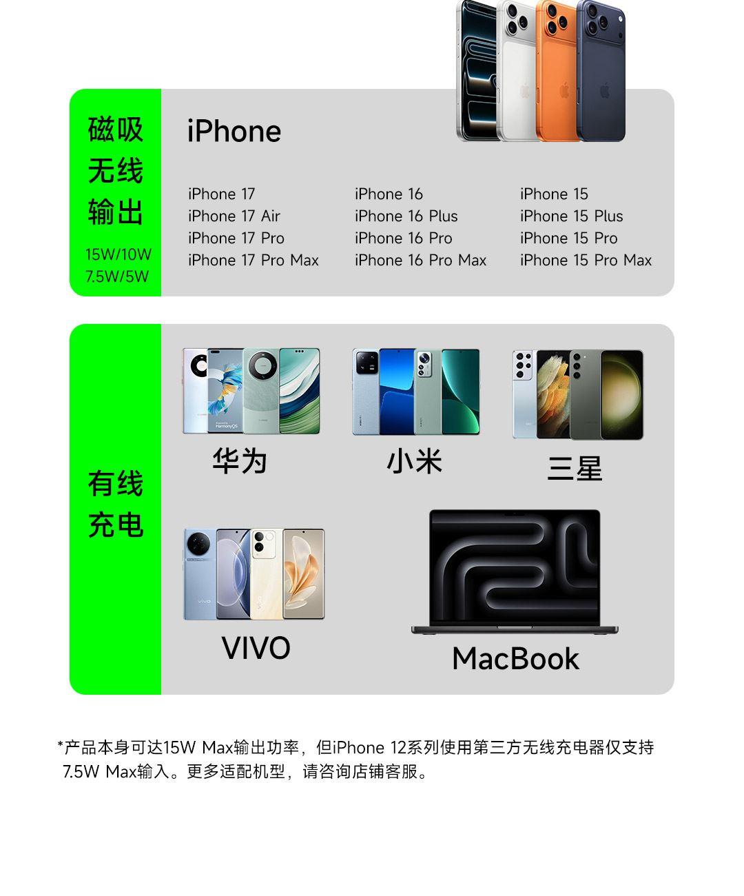 航空级铝合金材质,卡片式外观设计,轻薄搭档,磁吸一贴闪充