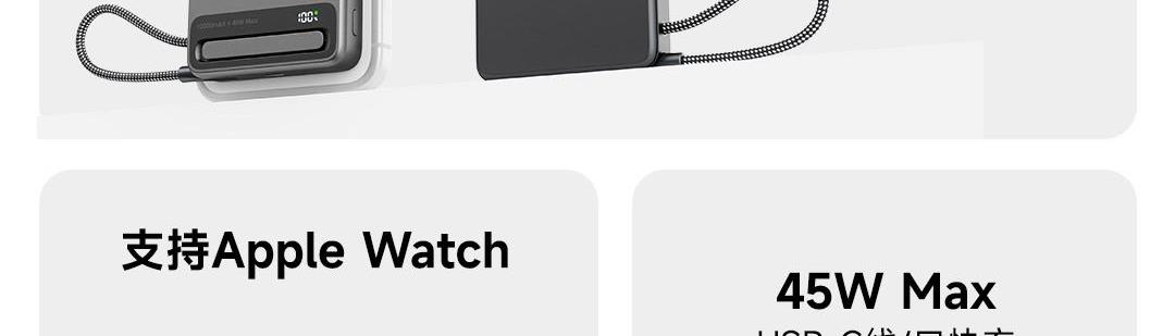 Type-C线输出支持PD45W,可为 MacBook 轻松补电Type-C线与Type-C口输入、输出双向快充,充电放电更省时