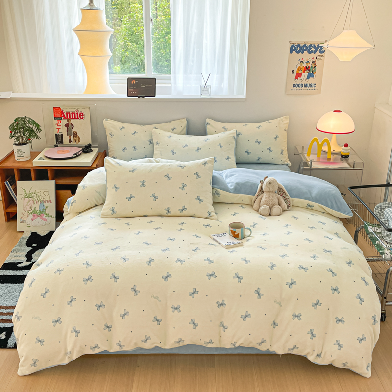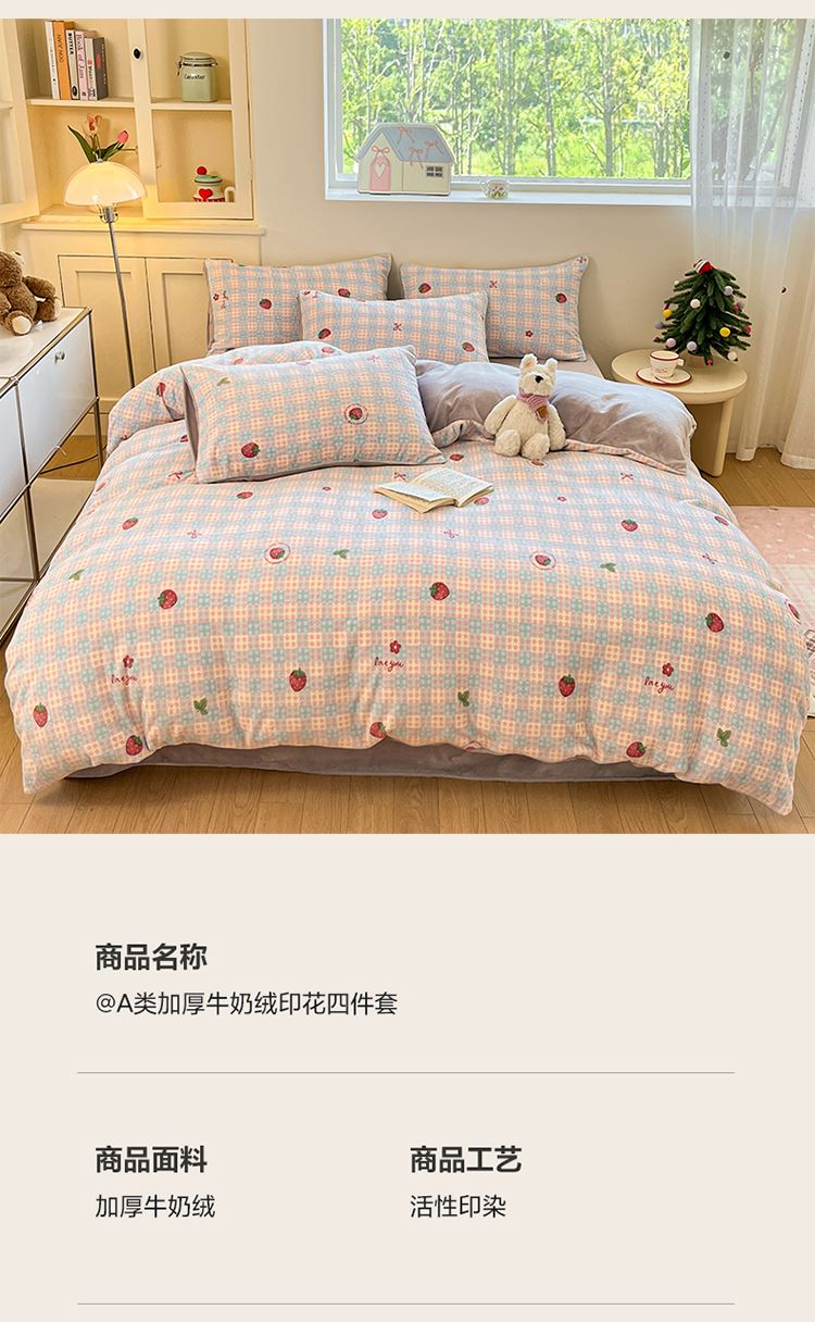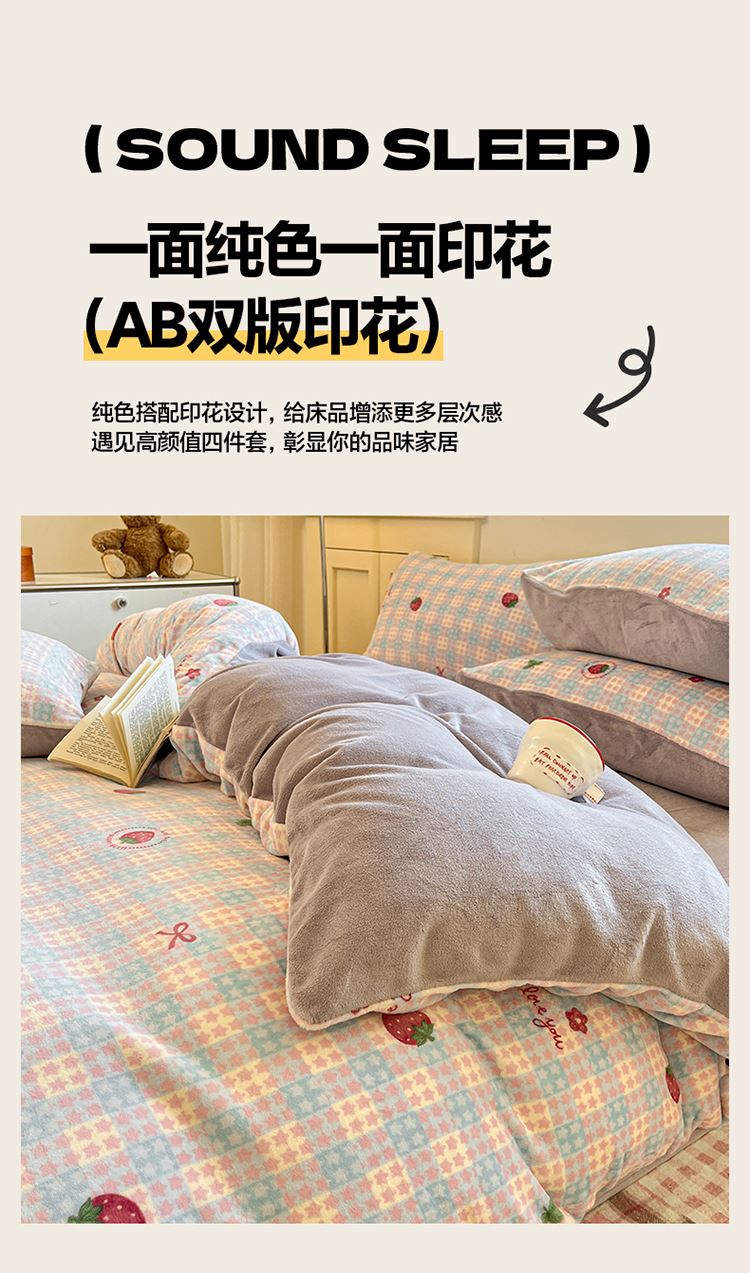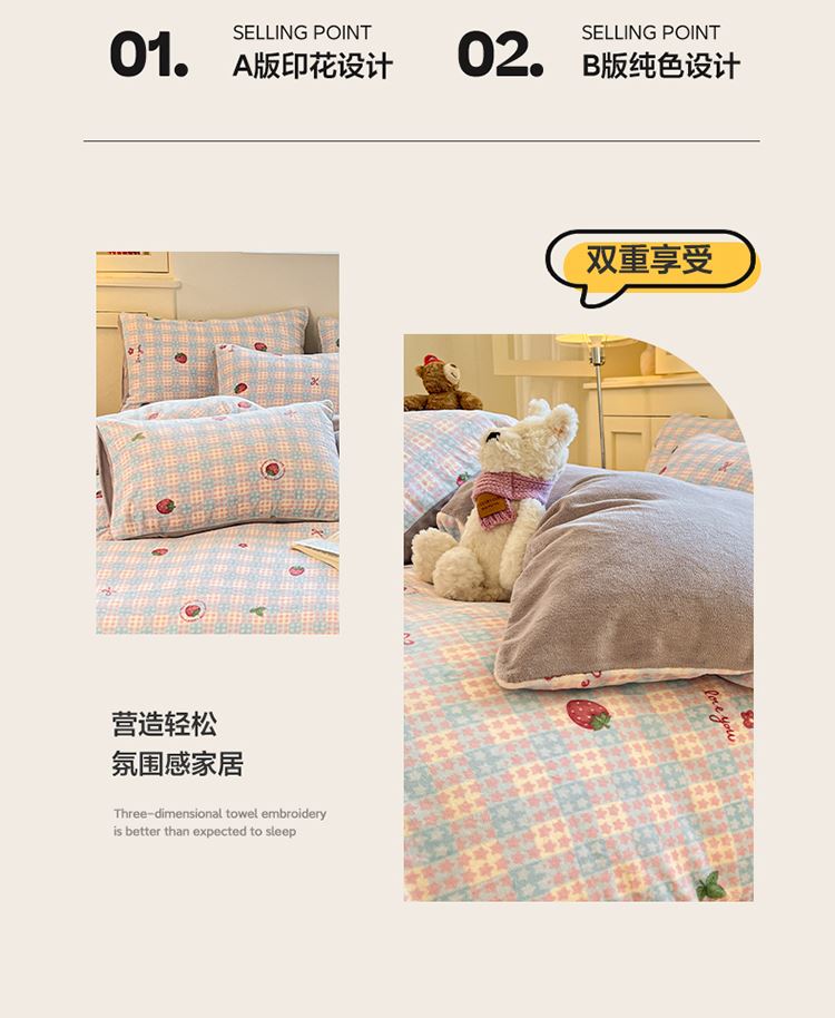 花花公子-家纺-新款高克重牛奶绒四件套冬季绒三件套