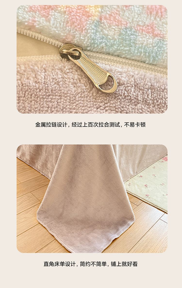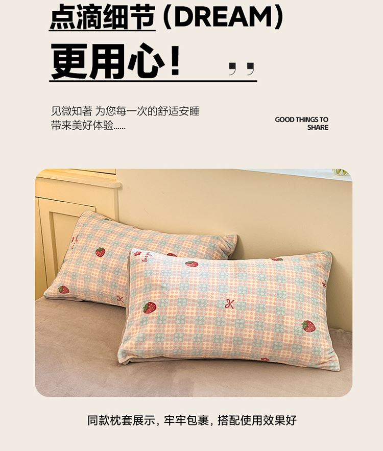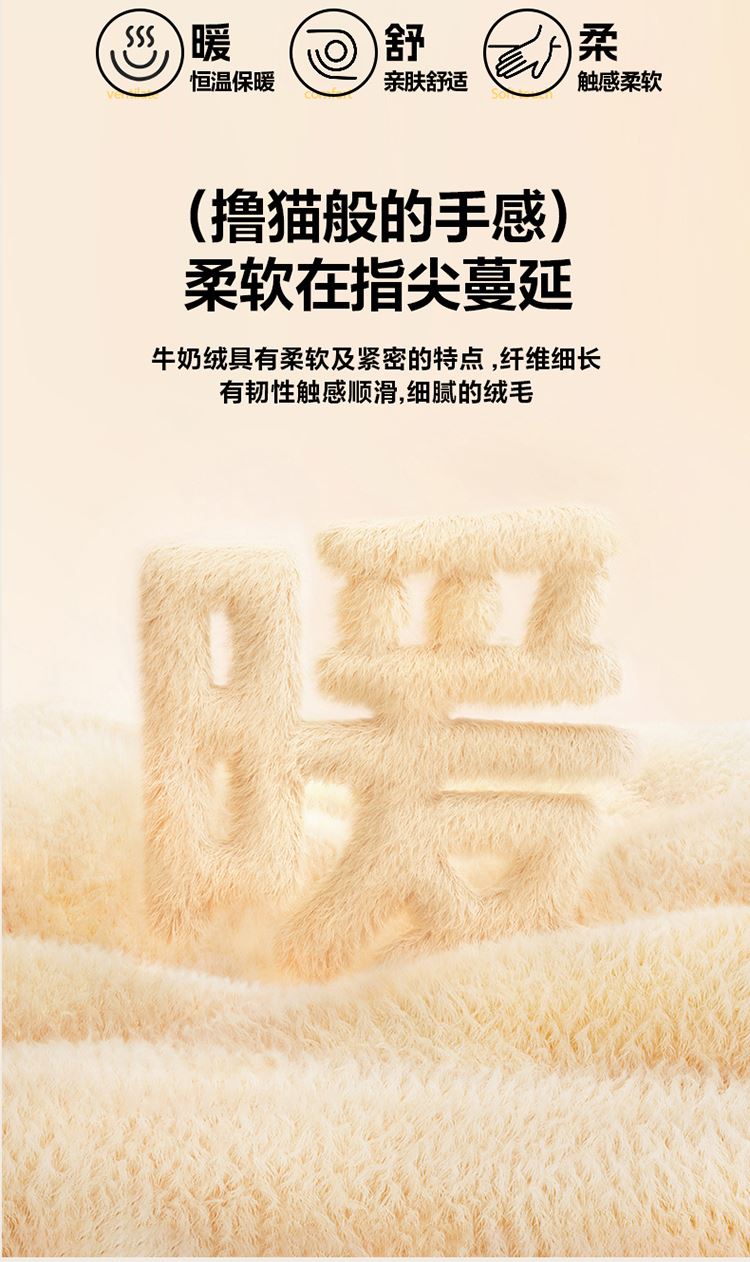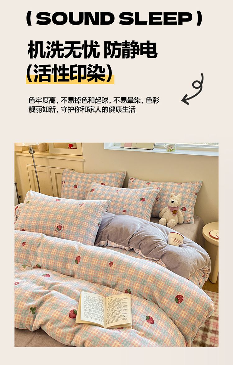 1:加密牛奶绒面料,柔软细腻亲肤透气如同第二肌肤,贴身舒适任由你辗转反侧都能温柔拥你入怀 2:克重加厚牛奶绒面料 柔软触感安抚内心 软糯厚实有肉感 让温暖自由来去亲肤速暖 尺寸:被套 200*230cm*1 床单:230*230cm*1 枕套48*74cm*2