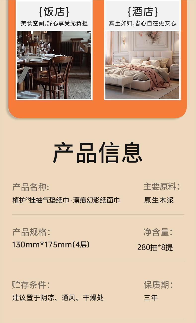 植护漠痕幻影挂抽抽纸130*175mm/4层280抽*8提