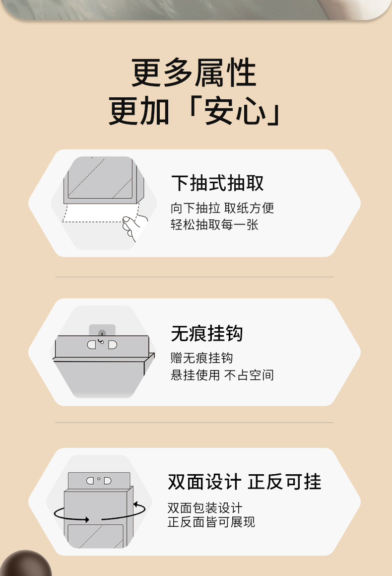 销售规格:130*175mm/4层 280抽 香型:无香 主要原料:原生木浆 保质期:3年 1、精选原生木浆,柔韧性更好 2、优等品等级,高标准品质 3、纸质绵柔细腻,擦拭不留屑,亲肤零刺激 4、湿水性好,强韧吸附水渍不易破 5、四层压合紧密,纤维排列细致,拉扯不易破 6、原生木浆,天然安心 7、医护级认证,品质有保障。