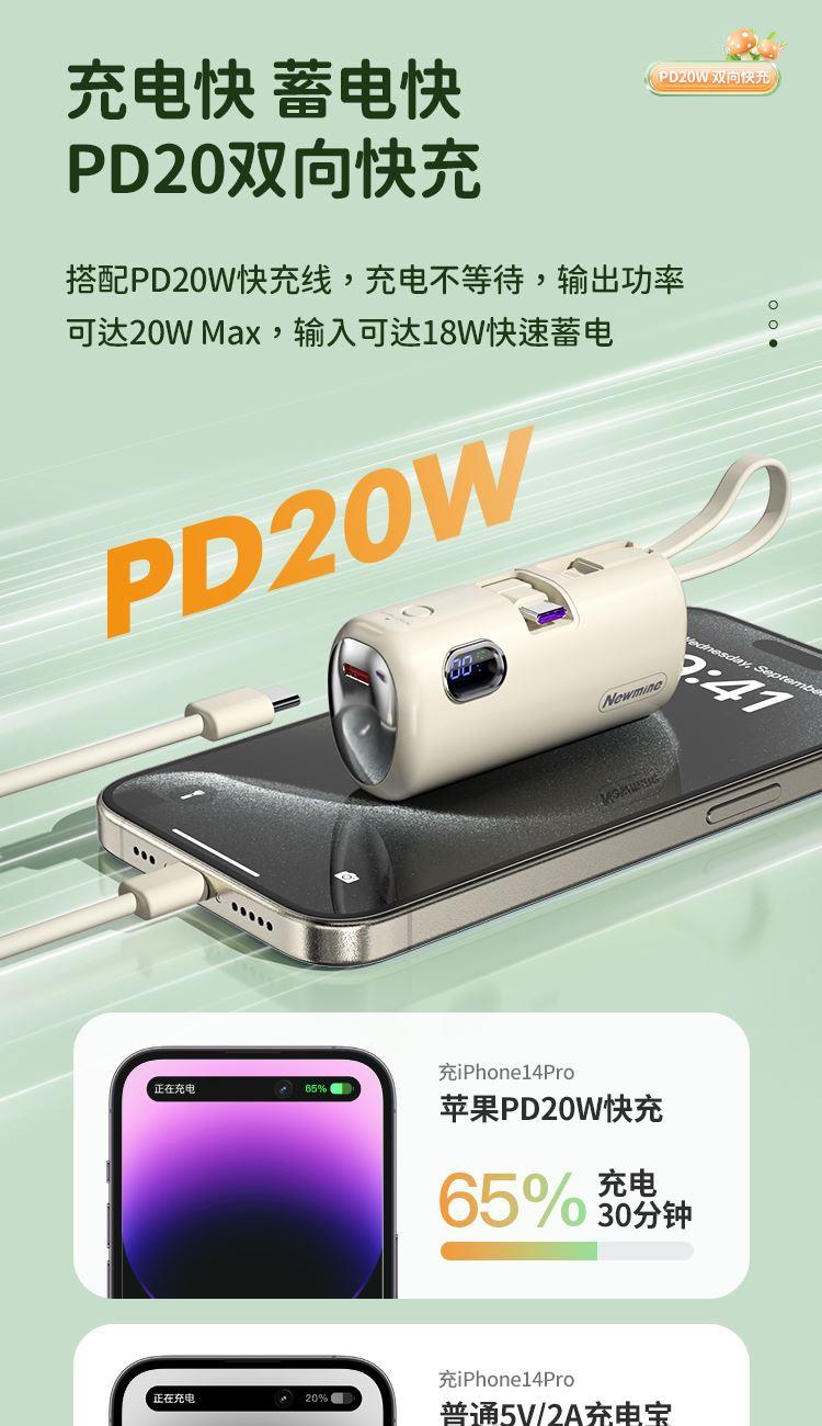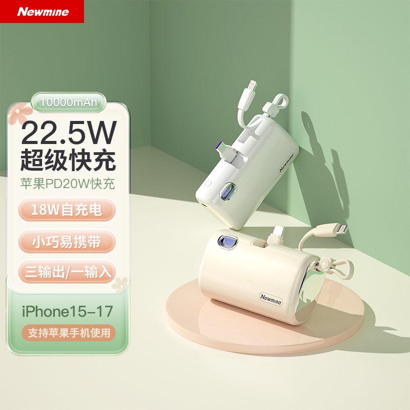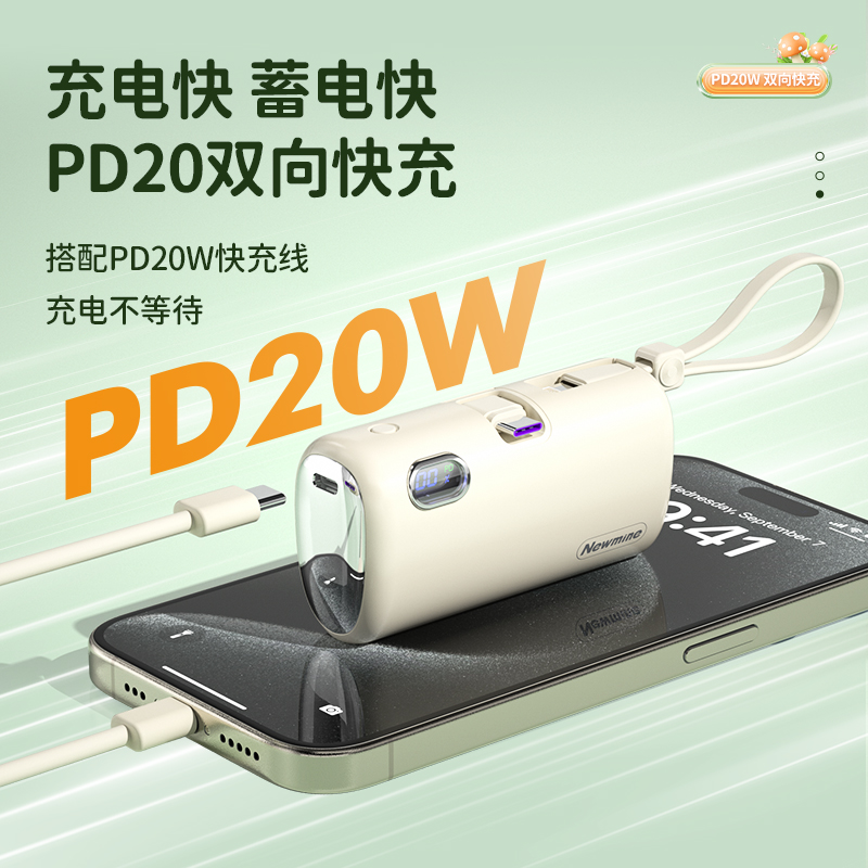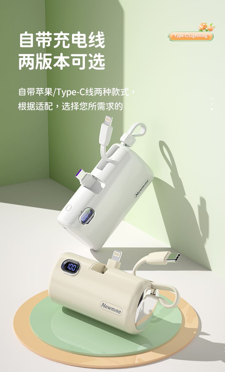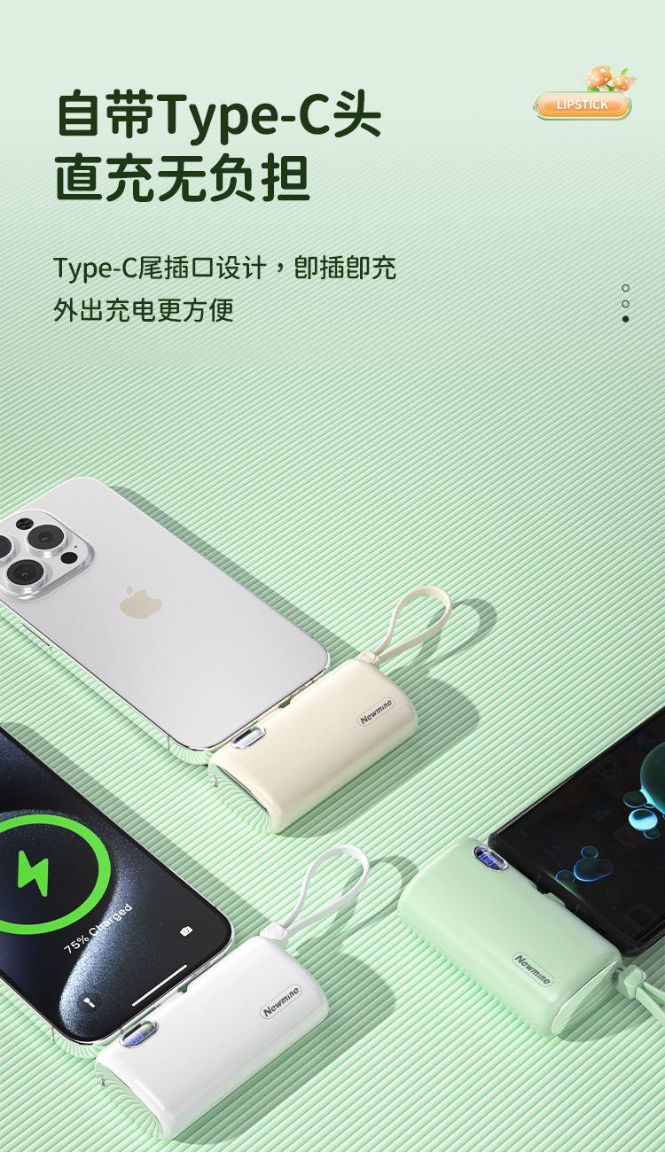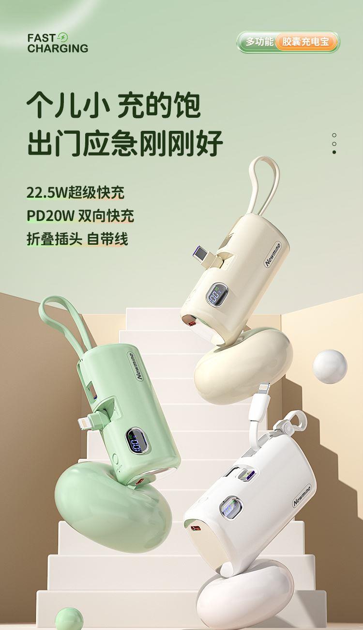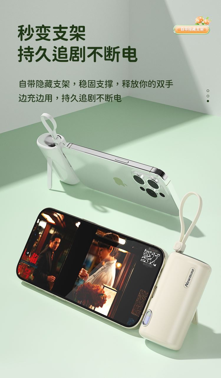 22.5W超级快充,苹果/Type-c通用胶囊充电宝。带手机支架。