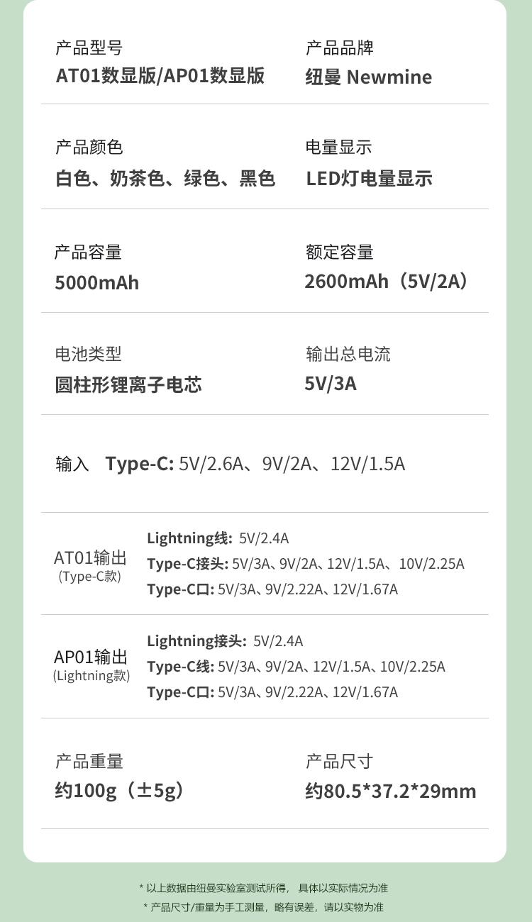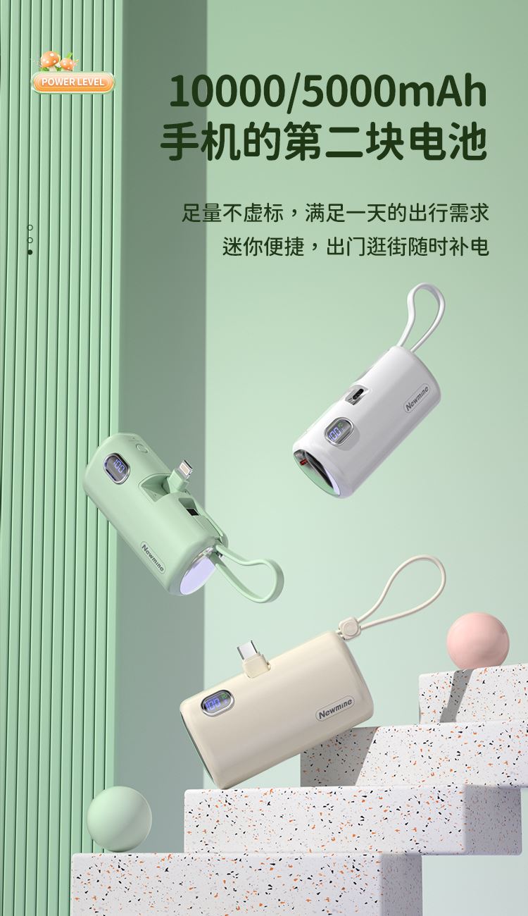 纽曼胶囊数显支架一万毫安充电宝AT01-1W数显快充版