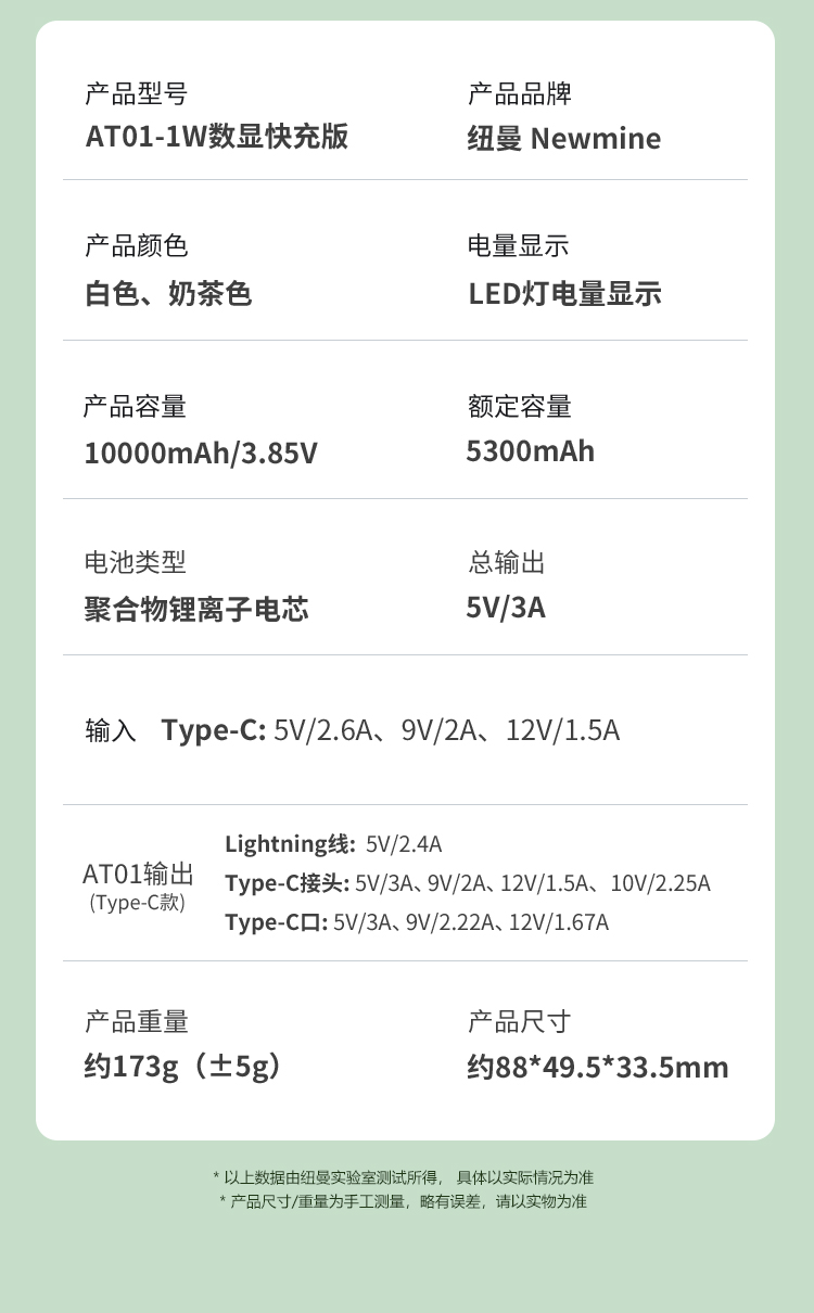 总输出:5V/3A产品尺寸:80.5*49.5*33.5mm,重:约175g