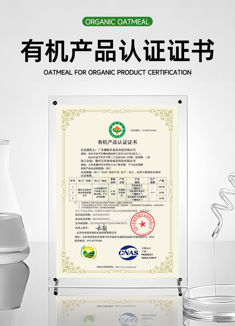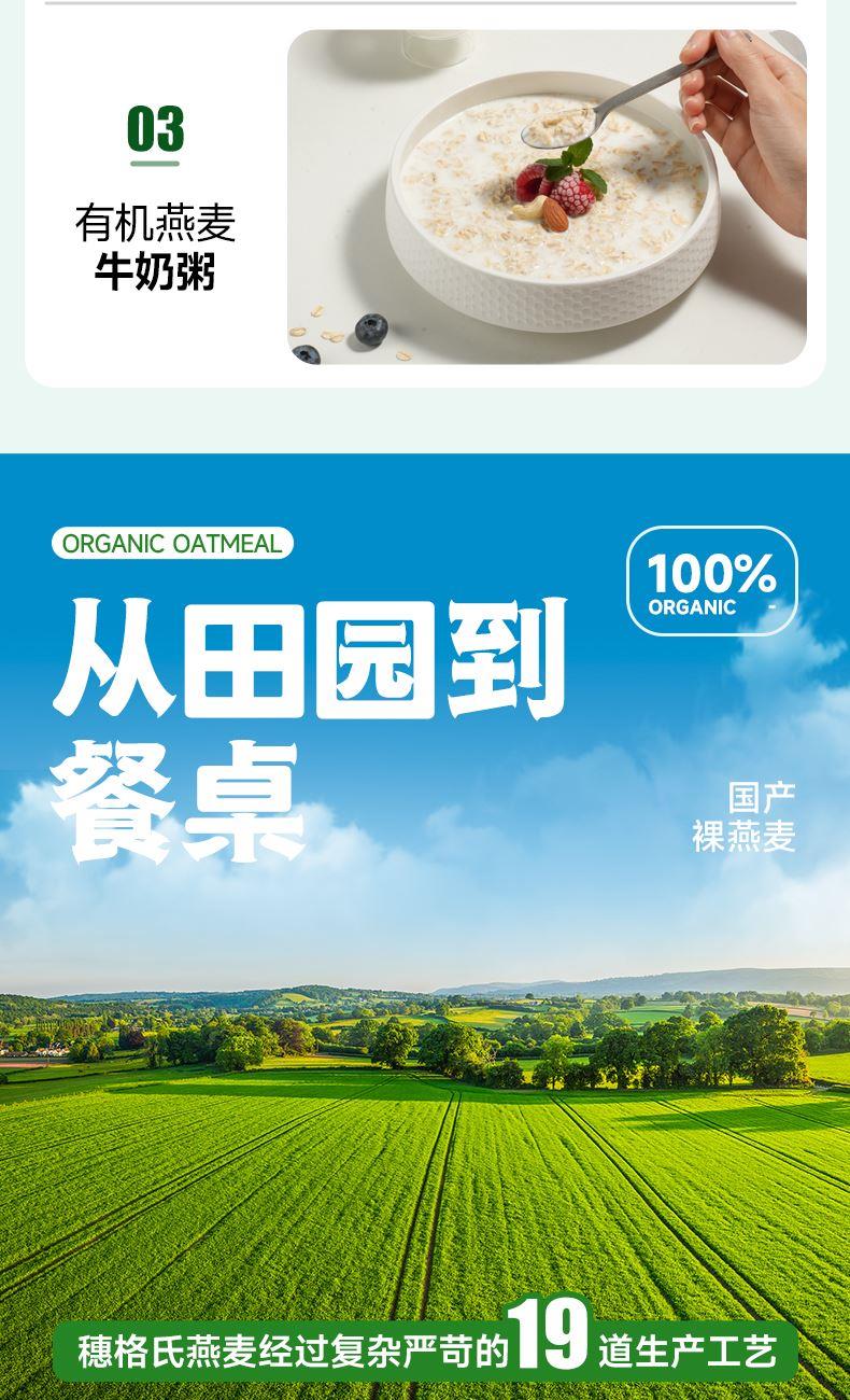 穗格氏有机燕麦礼盒480g(30g*16条) 配料表:有机燕麦片 产品卖点: 1,一罐一码 全程有机可追溯; 2,穗格氏专属有机种植基地,张家口市农业科学院育成品种“坝莜一号”; 3,高膳食纤维,含有蛋白质,无添加蔗糖,含维生素B1; 4,通过632项农残检测; 5,适合青少年,上班族,宝妈,中老年人的有机新生活。 6,小袋装,一顿一袋。