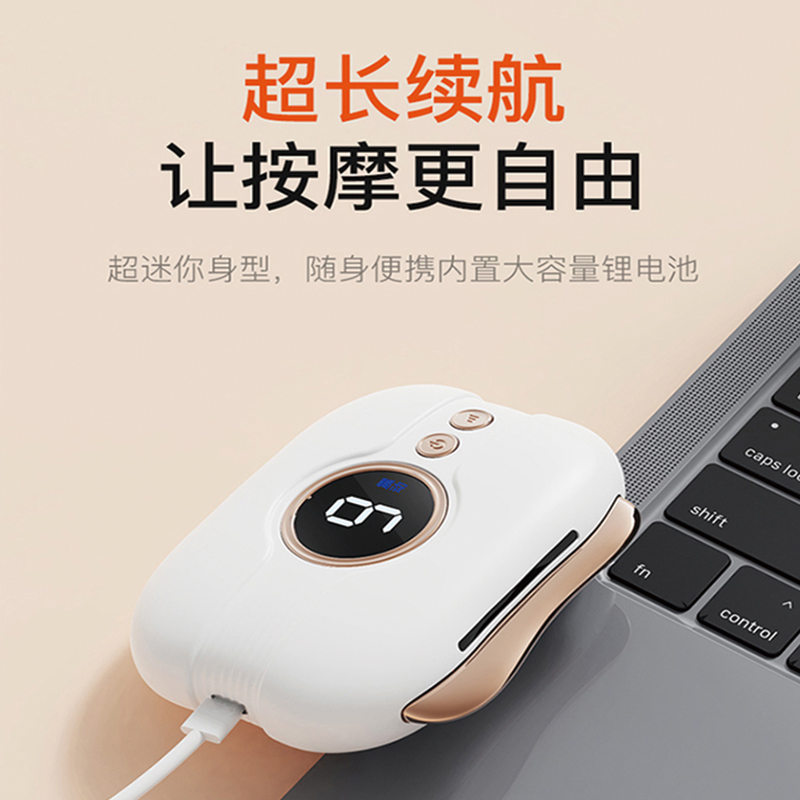 4、超迷你身型,随 身便携内置大容量锂电池,超长续航,让按摩更自由;