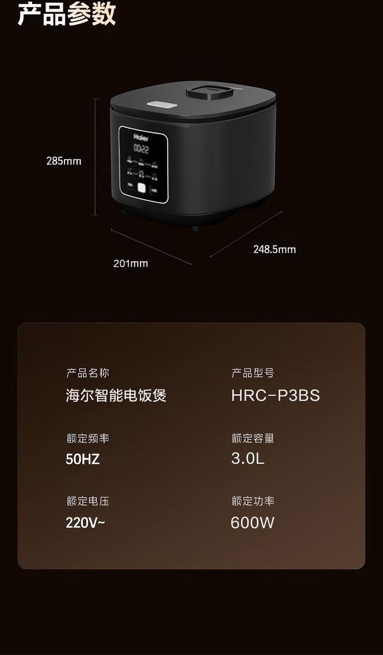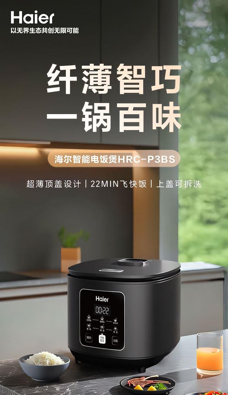 海尔智能3L纤薄智巧电饭煲HRC-P3BS