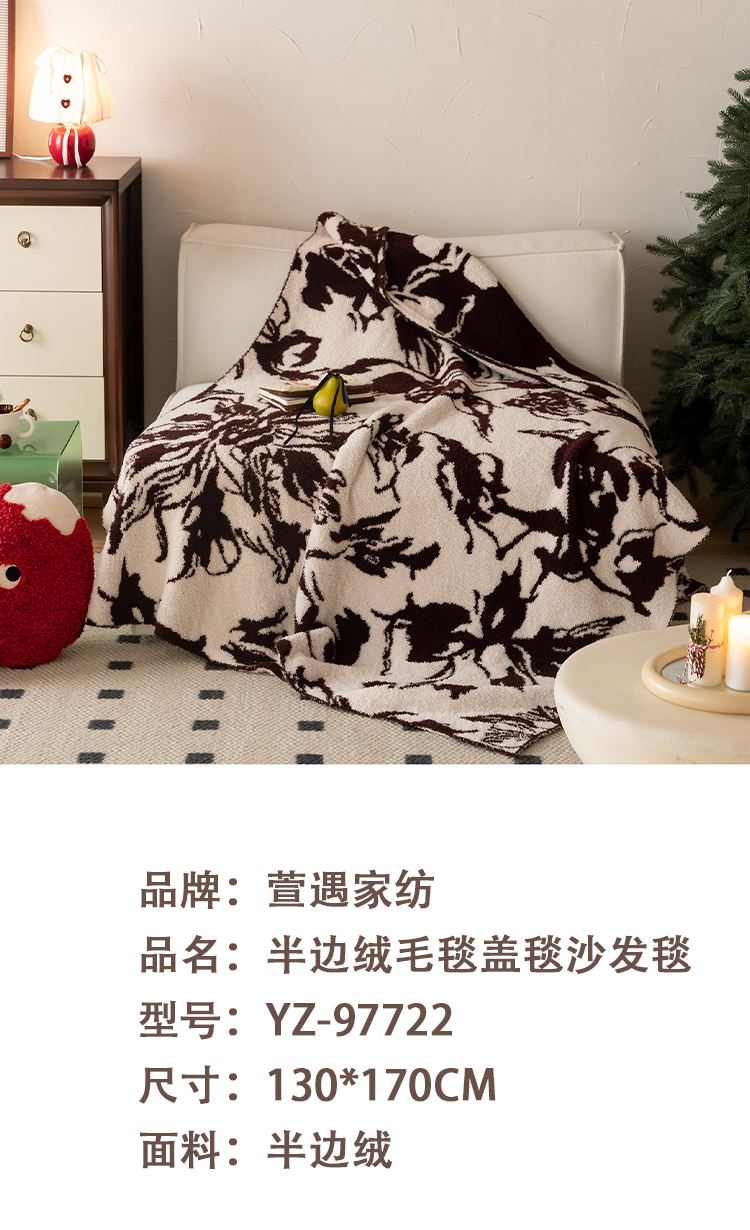 萱遇家纺半边绒毛毯盖毯沙发毯YZ-97722