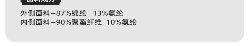 内侧面料92%涤纶+8%氨纶
