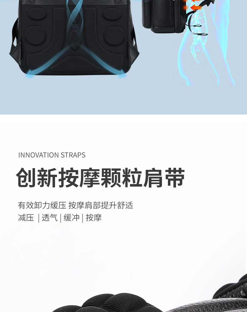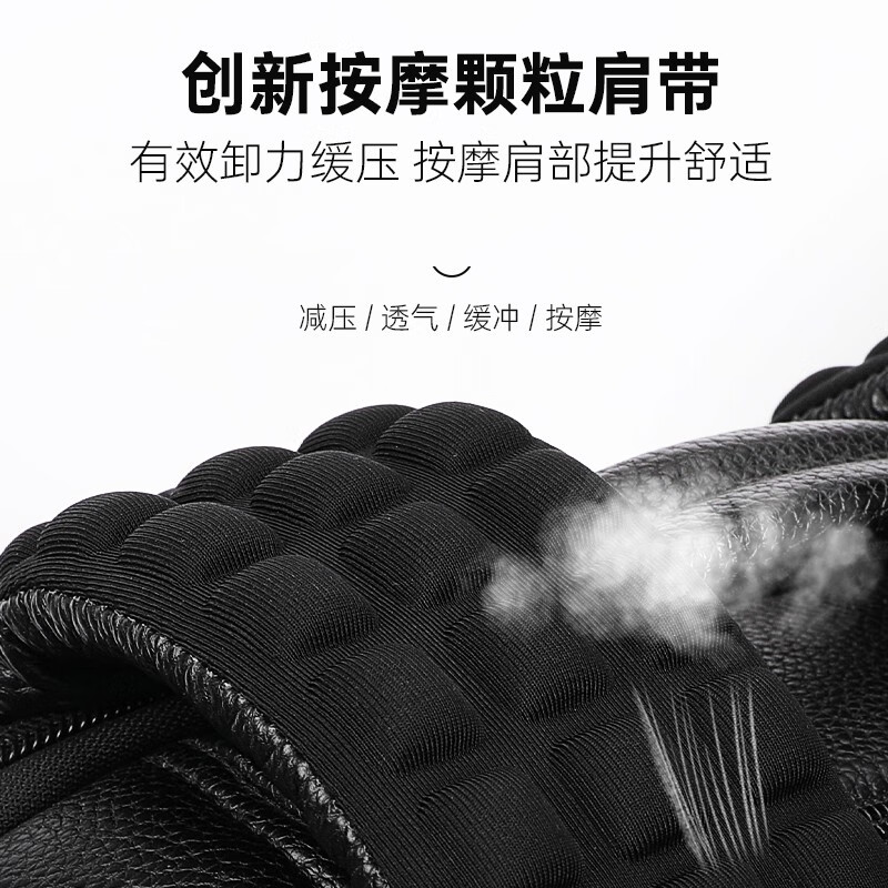 型 号:sw-88128 彩盒包装 尺 寸: 300*180*430mm 材 质:皮革 颜 色:黑色 重 量:1.0kg 双肩背包:大容量双仓,多功能科学分区系统,质感金属挂扣,可挂钥匙或军刀等小物件。轻奢格调,奢华质感·匠心之作。