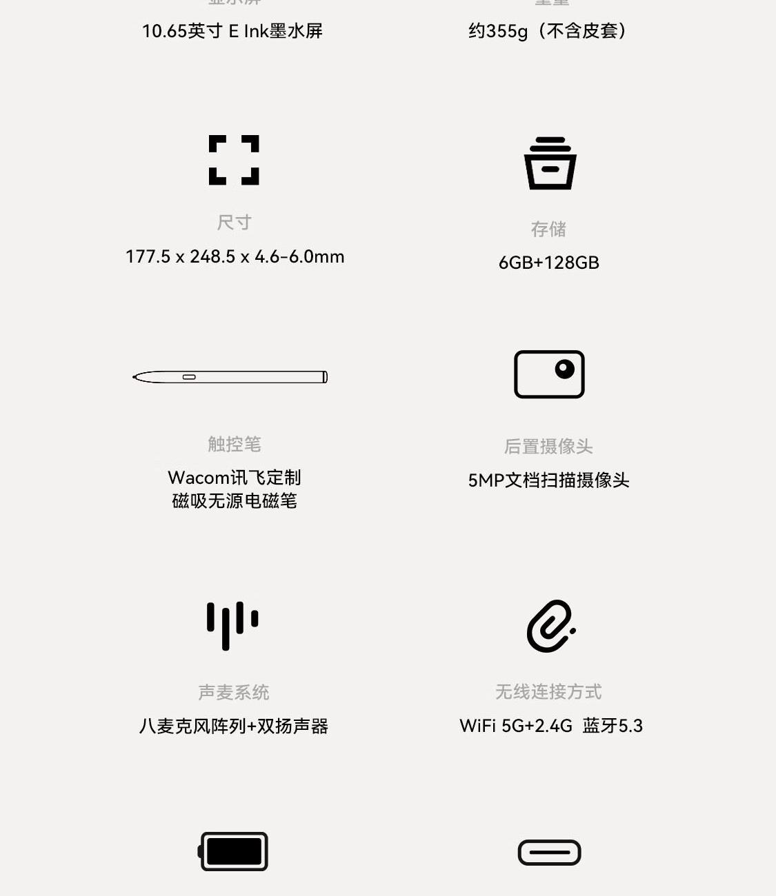 科大讯飞(iFLYTEK) 屏幕尺寸:10.65英寸 类别:阅读器套装 分辨率:300ppi 手写功能:电磁 屏幕类型:其他 内存容量:128GB CCC强制性认证:是 国补备案型号:XF-DX-T510E 认证型号:XF-DX-T510E