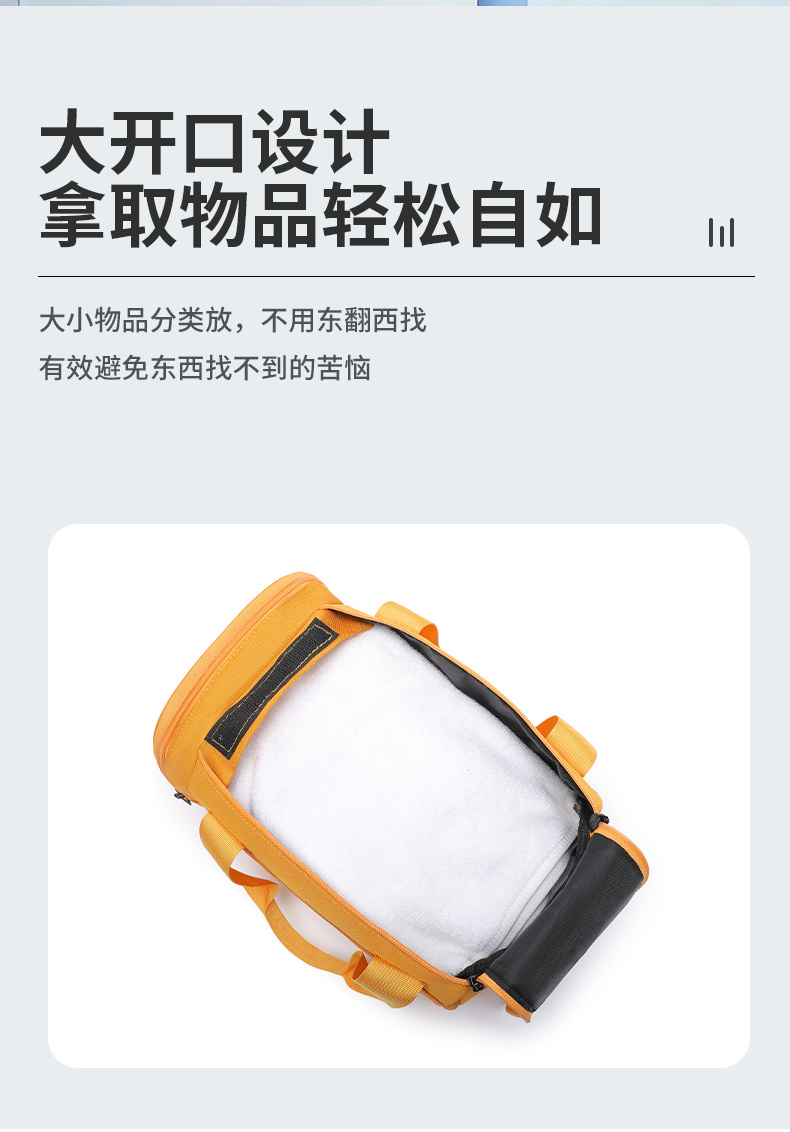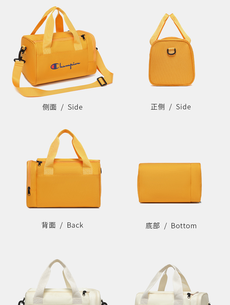 类别:旅行包 颜色:白色/黄色 面料:织物 里料:织物 闭合方式:拉链 尺寸:300*195*200mm 吊牌价 : 210元 适用场景:日常包 上市时间:2025年秋季 类别:健身包 包袋大小:小包 适用人群:男女通用