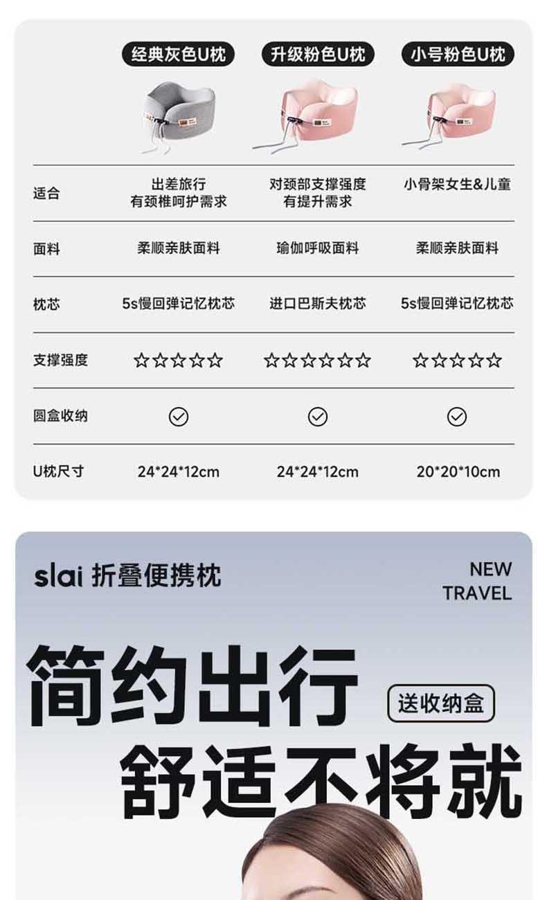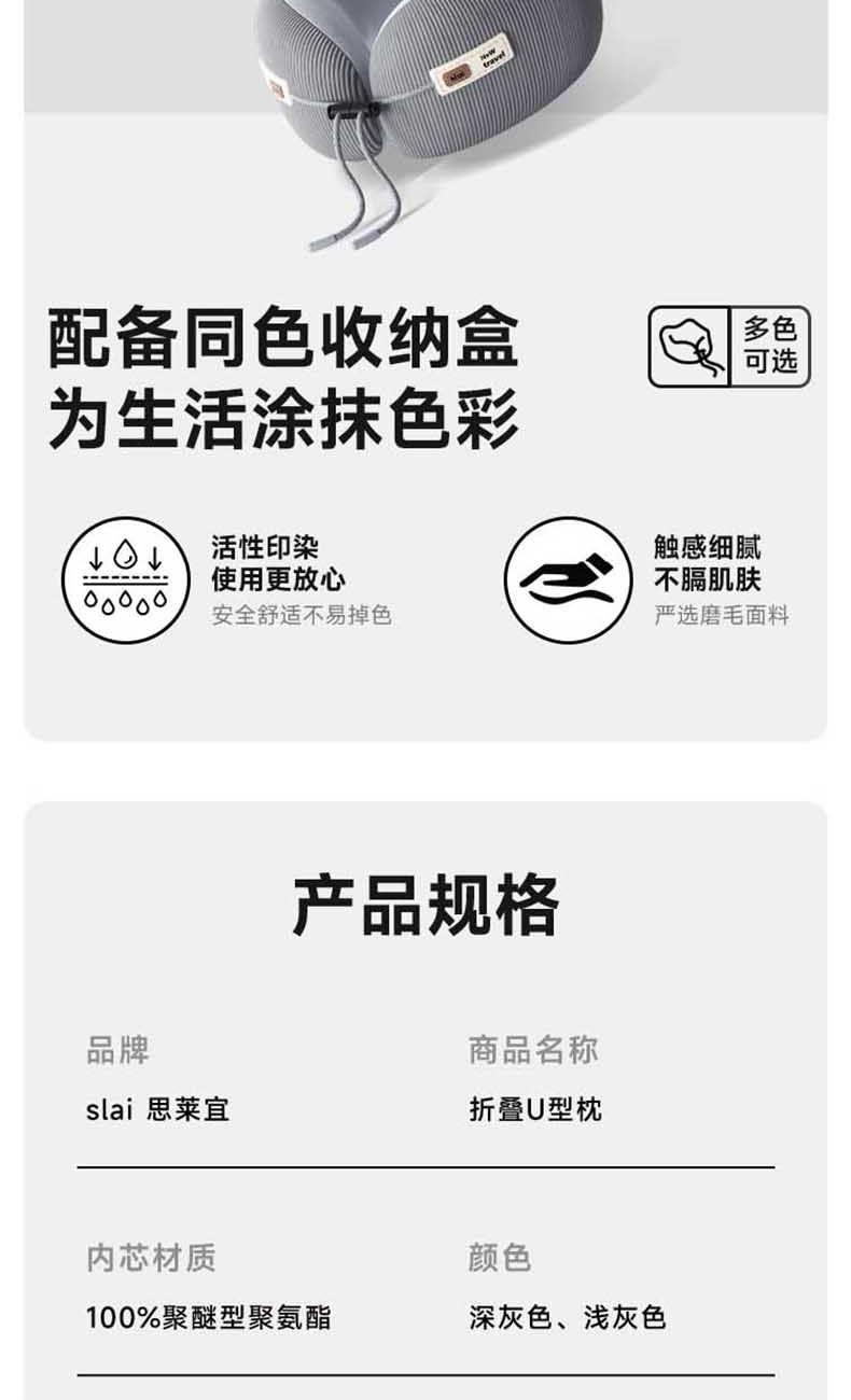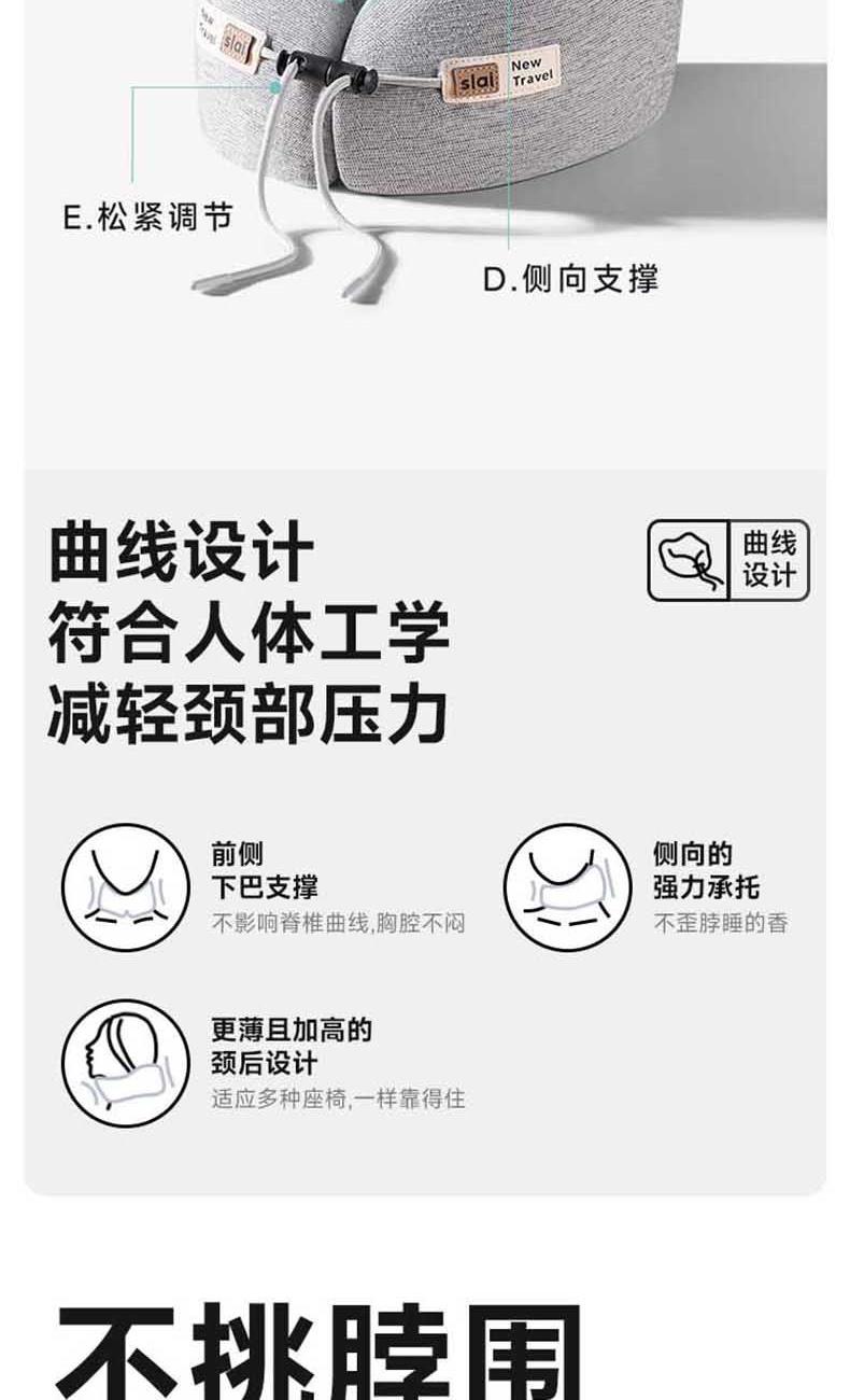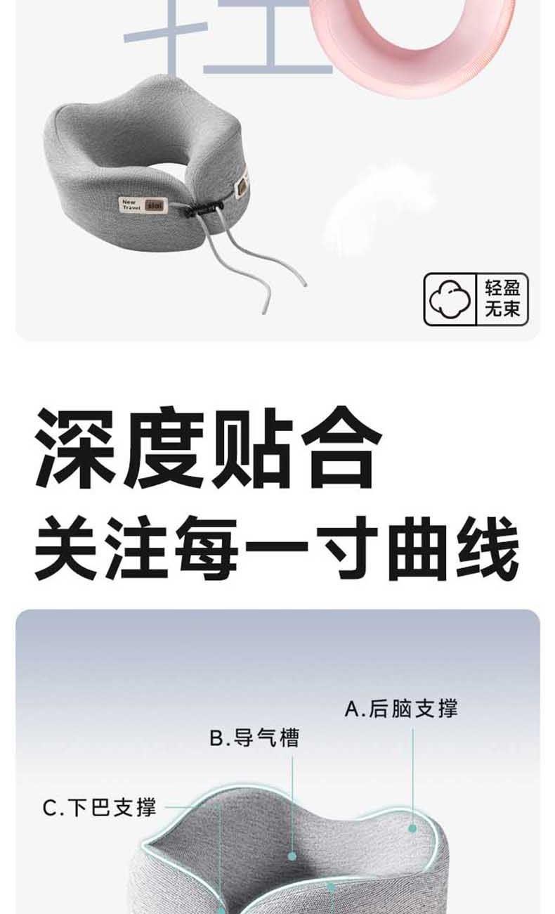 【人体工学设计】能有效的减轻颈部压力。 【可调节拉伸】可随意调节合适大小。 【方便携带】折叠后手机般大小,赠送收纳盒,更易携带。