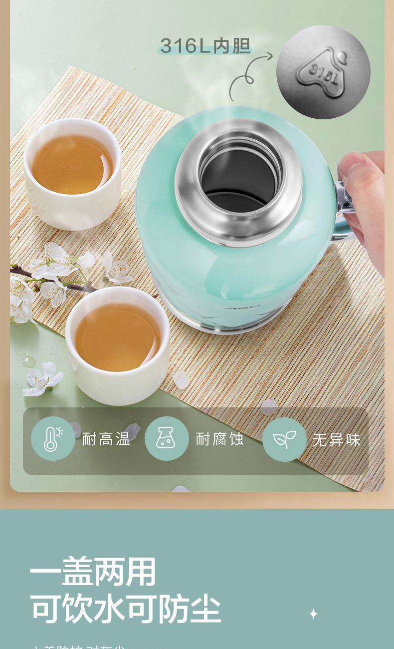 产品型号:RWS17P12Q-W 产品规格:1.7L 彩盒尺寸:143.5x143.5X280 产品净重:0.81kg 产品颜色:白色、蓝色、粉色 1、内胆316L材质,食品接触用更放心。 2、一盖两用,可饮水可防尘。 3、高真空工艺,24H长效保温。 4、按压出水,倒水方便快捷。 5、硅胶底垫拿放,静音防滑。 6、亮丽漆面,简约又时尚。