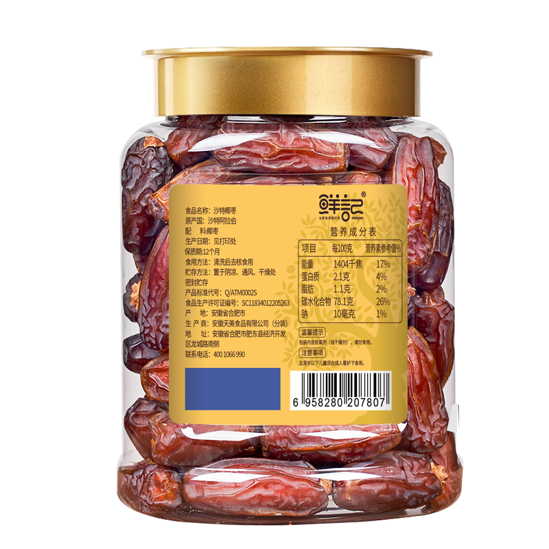 进口椰枣干,自然无添加,天然果糖易吸收; 完整颗粒,自然果香。
