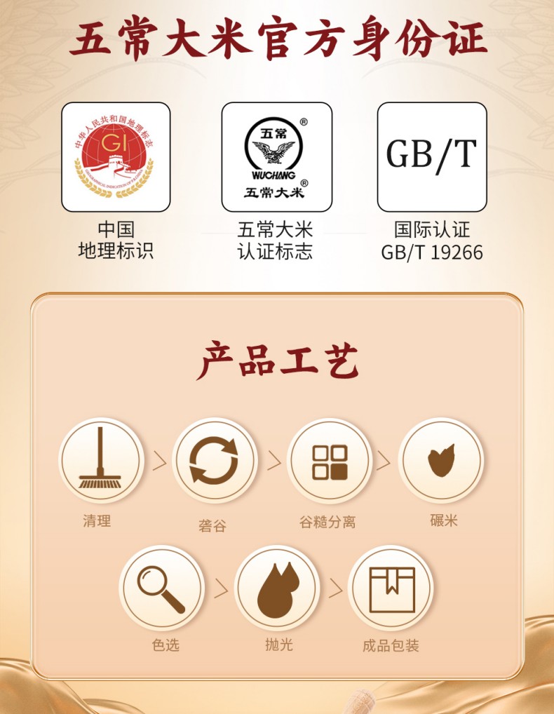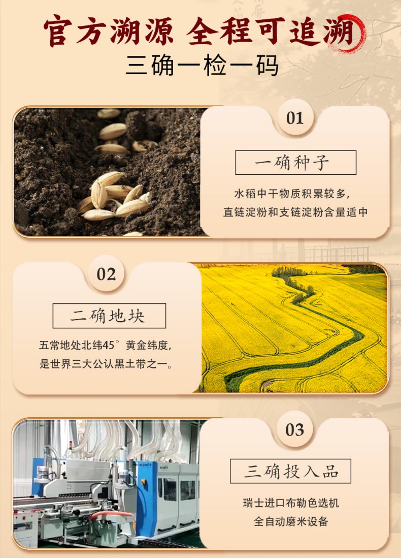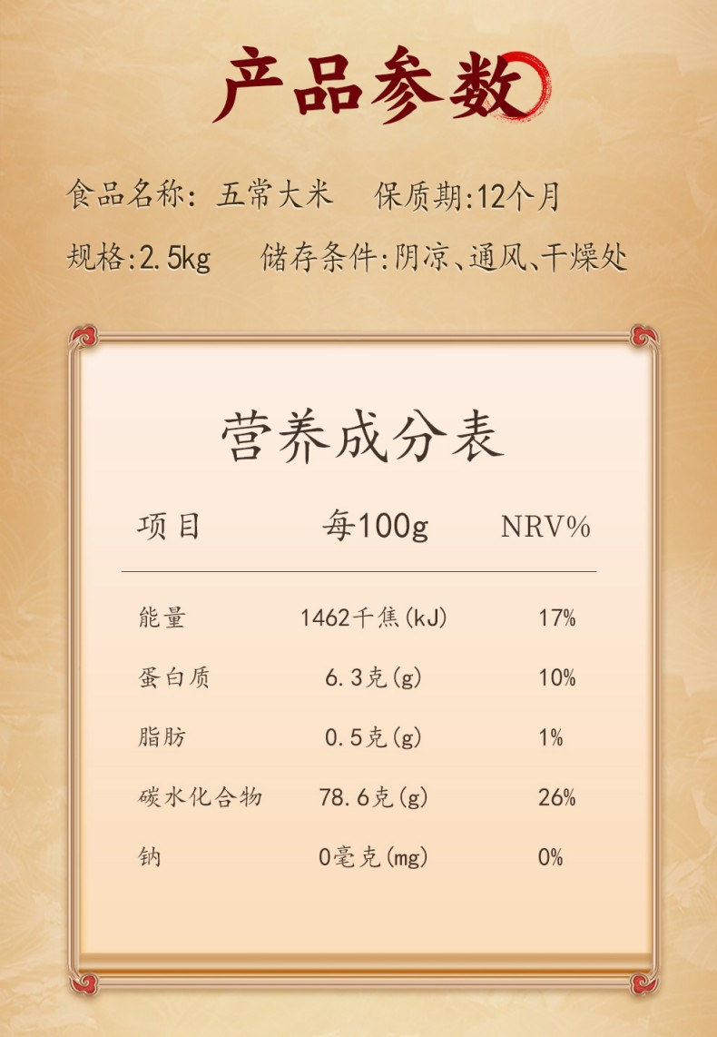 规格:2.5公斤 产品标准代号:GB/T 19266 质量等级:优质一等 米种:原粮稻花香7号 保质期:12个月 尺寸:240*265*73mm 原稻花香7号,湿地种植,甄选稻种,营养丰富,颗粒饱满,米粒均匀,醇厚绵长,芳香四溢,享誉中国,五常源产,来自“稻米之乡之一”的黑龙江。 外观:粒长饱满,晶莹油亮。 口感:米香浓郁,软糯弹牙,甜润回甘 。