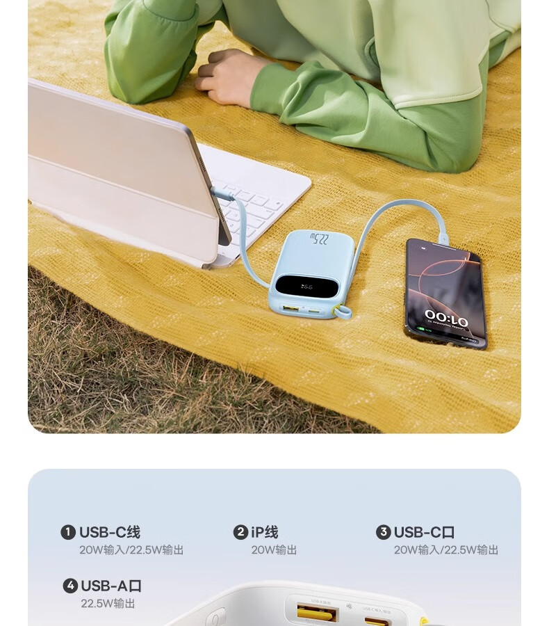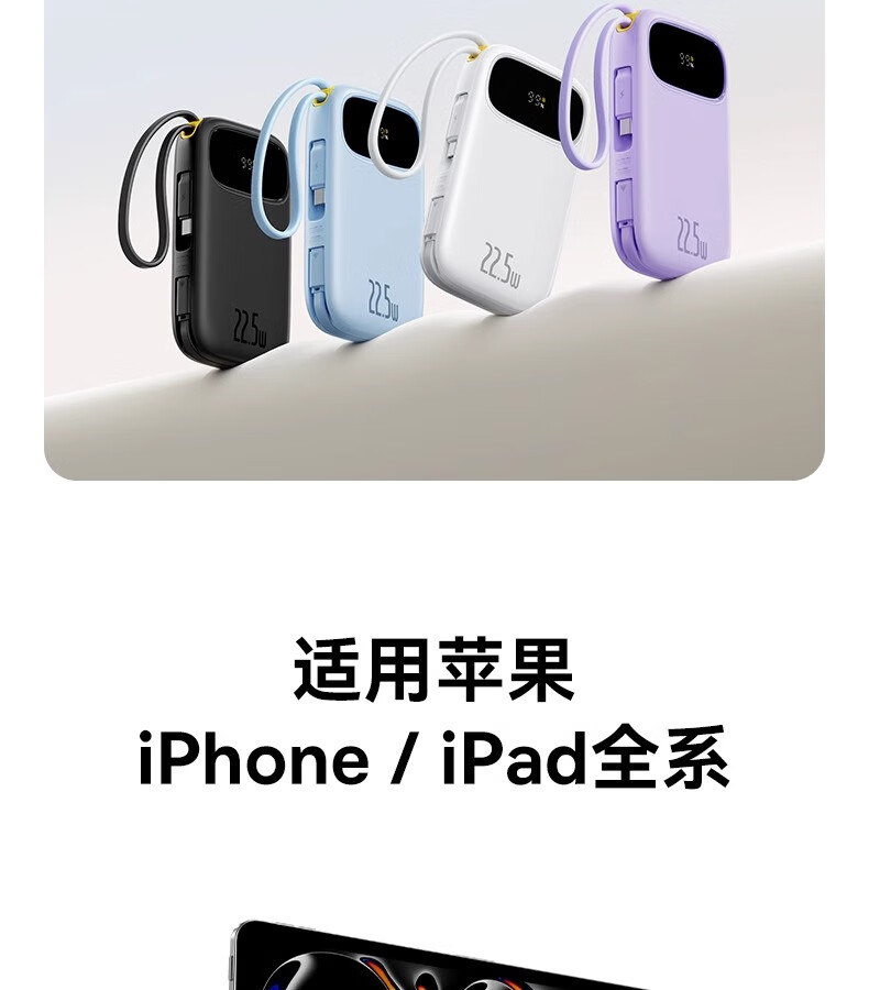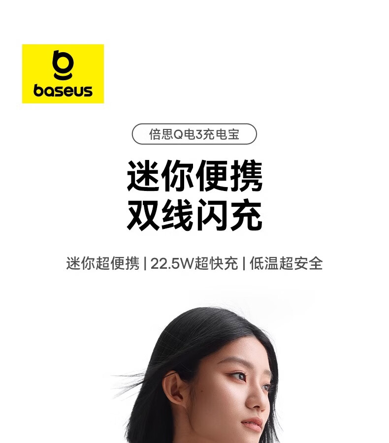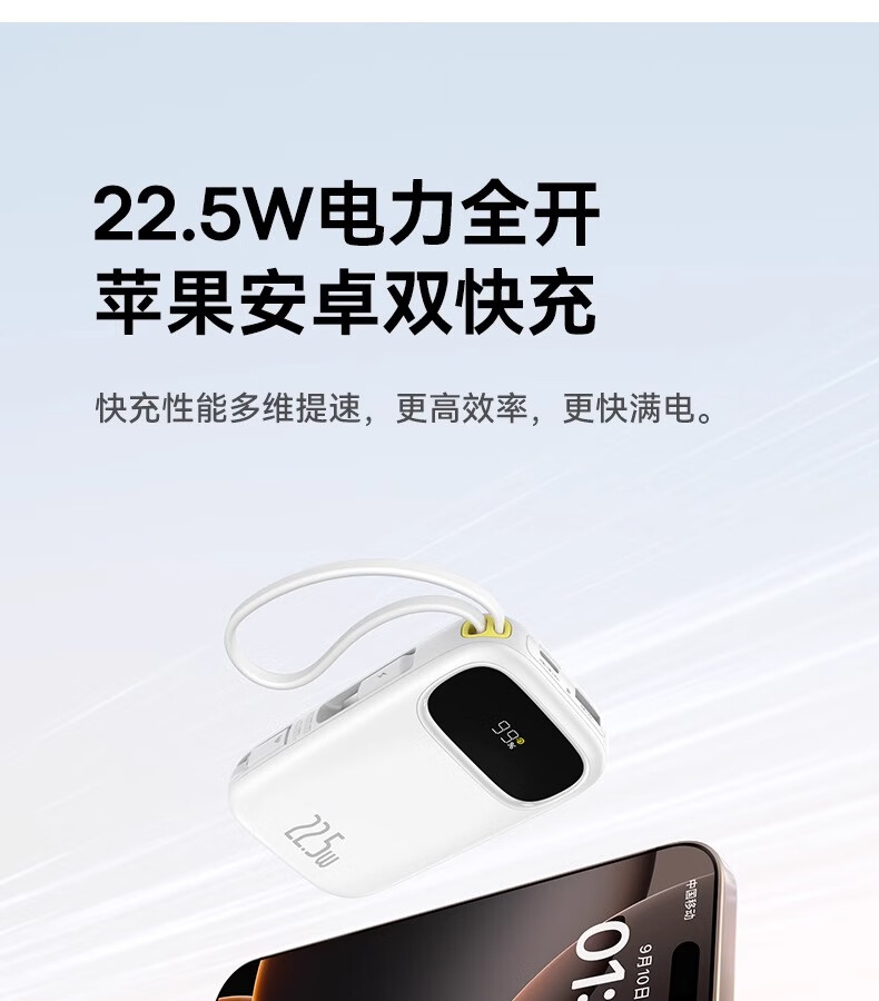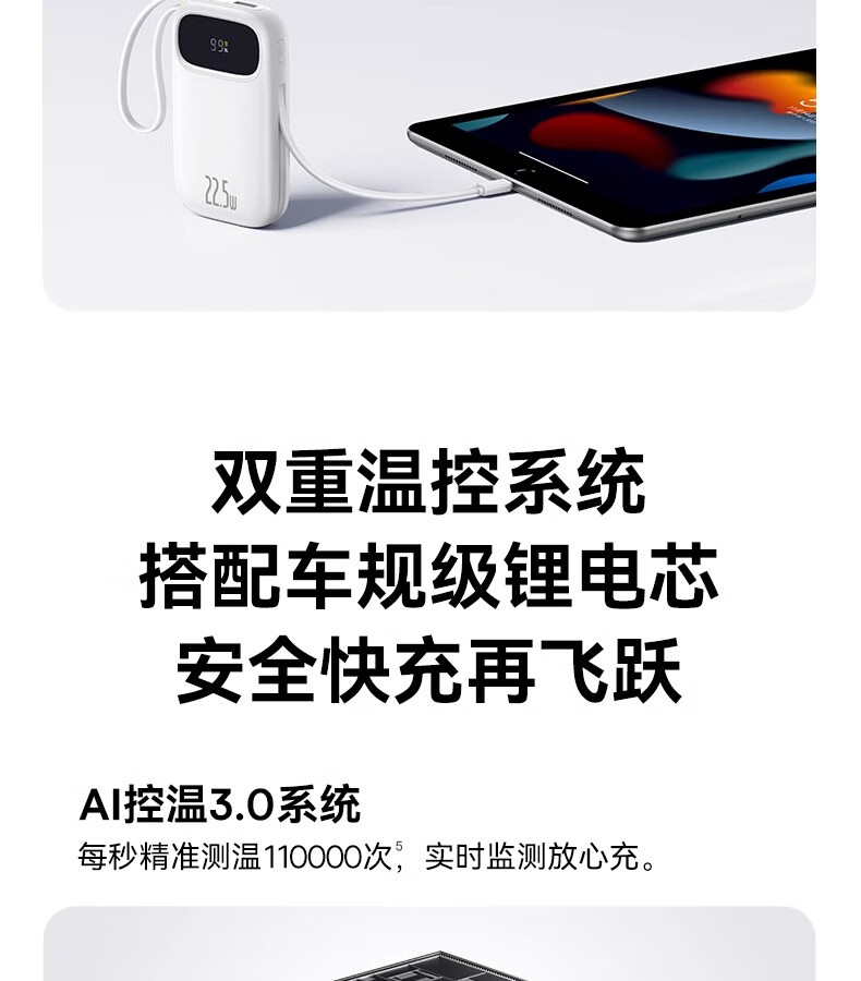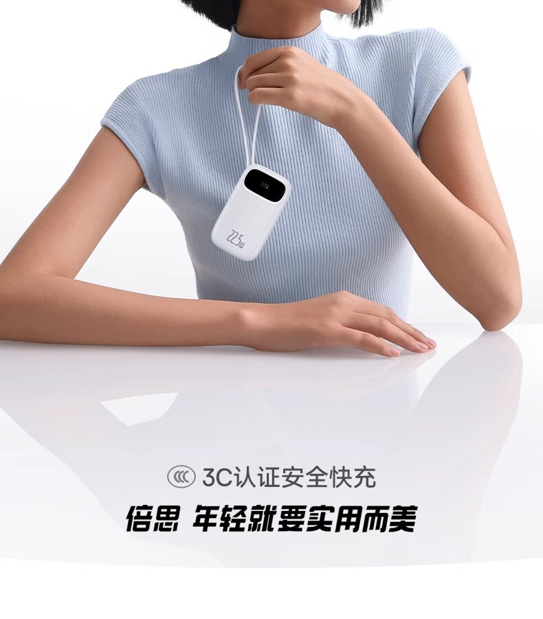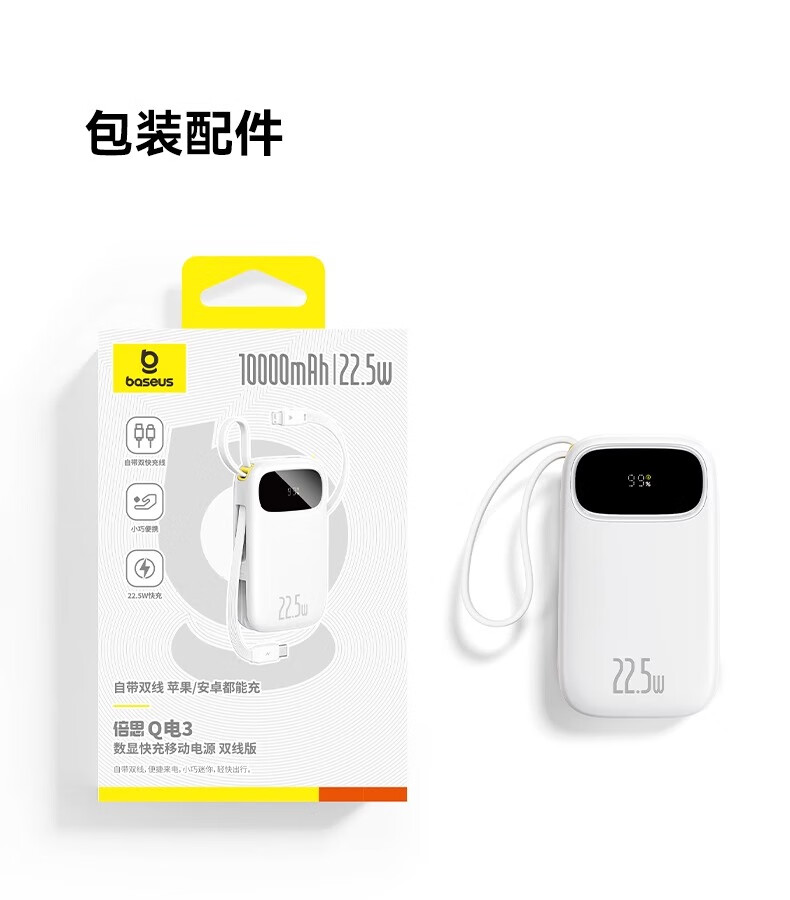 倍思Q电3数显快充移动电源双线版10000mAh22.5W