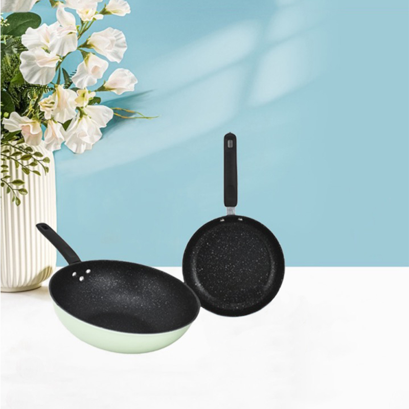 规 格:30cm炒锅+22cm煎锅 材 质 :精铁+麦饭石不粘涂层 精选优质铁基材,锅体采用独特工艺一次模压成型,独特造型优雅大方,尽享时尚烹饪生活;不粘涂层,省油少烟,光洁易亮,耐腐蚀,经久耐用,烹饪味道更可口; 手柄采用胶木手柄,隔热防烫,根据人体工程学设计的手柄,握感舒适,美观大方。