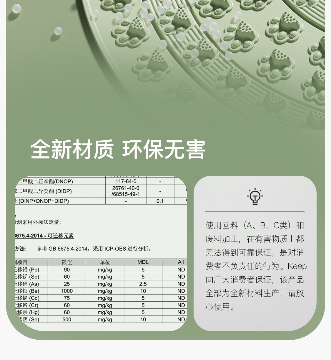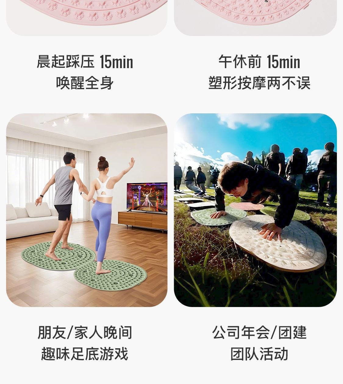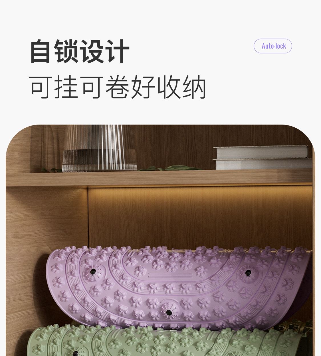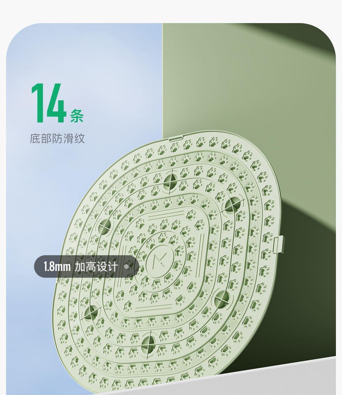 尺寸:55*55cm 颜色:绿色,粉色,紫色,灰色: 材质:TPE;环保无毒材质 方形圆角加大加密设计 287个仿「猫爪」 设计双分区多功能按摩 75°科学刺激硬度 支持无限串联拓展 3068个加密按摩凸点 可做浴室防滑垫
