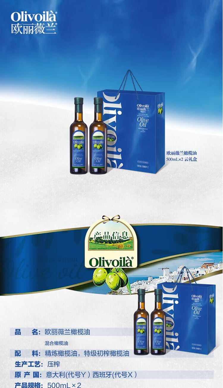 金龙鱼|欧丽薇兰橄榄油500mL*2(云系列)