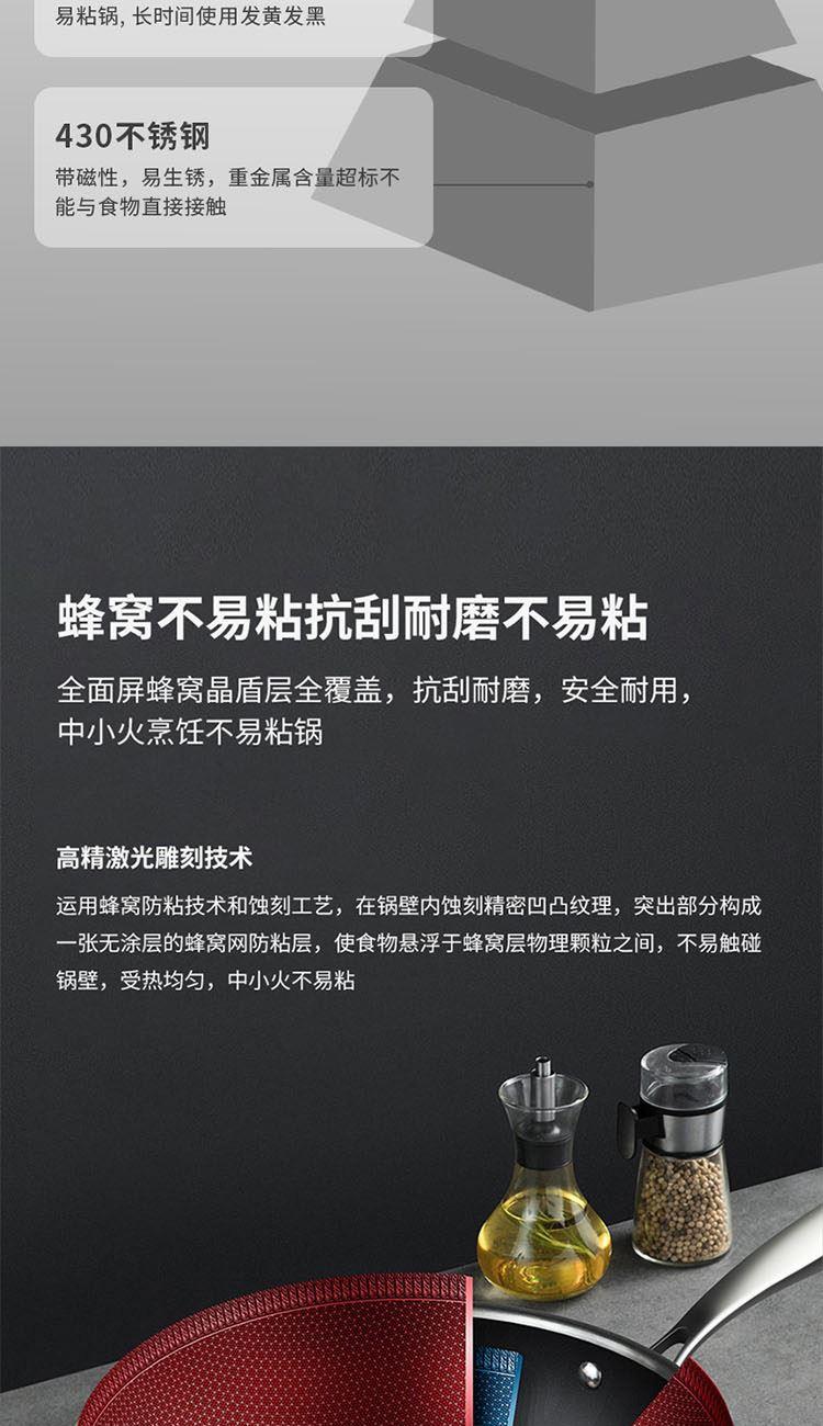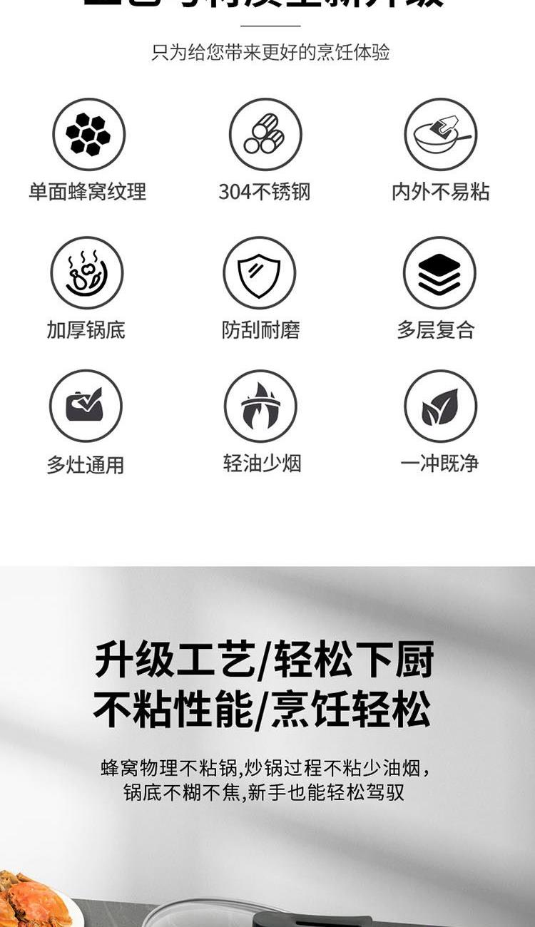 蜂窝结构和纳米不粘技术的结合使不粘无烟效果达到一个新高度;