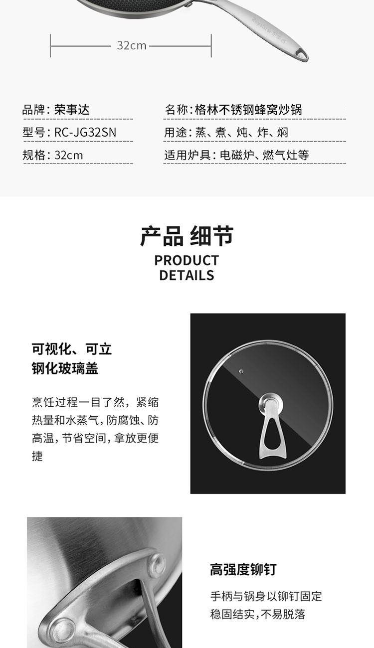 荣事达-格林不锈钢蜂窝炒锅RC-JG32SN