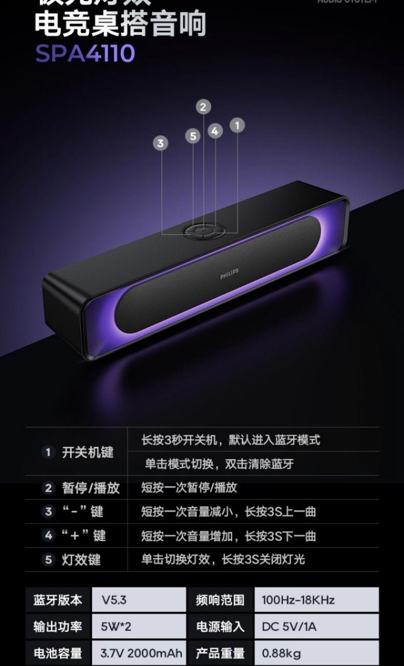 飞利浦/Philips电竞桌搭蓝牙音箱SPA4110