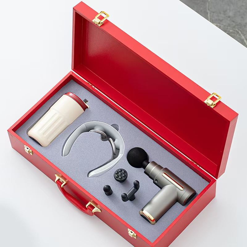 配 制: 1筋膜枪 温显杯 两用伞或 1筋膜枪 办公杯 茶叶罐 写字笔 充笔记本 锦盒 规格:筋膜枪:17.4*14cm 温显咖啡杯 15*6.7cm 颈椎仪:300毫安 办公杯14.5*10.4cm 茶叶罐9.6*9cm 礼盒47.9*23cm 工艺:商务实用性礼品,上班族刚需产品。专业级筋膜枪,6档变速,4种按摩头,液晶触屏,深度缓解肌肉酸胀。晴雨两用伞,纳米拒水黑科技,遇水即干,双倍防晒。