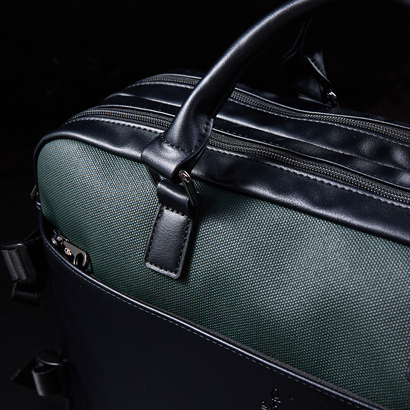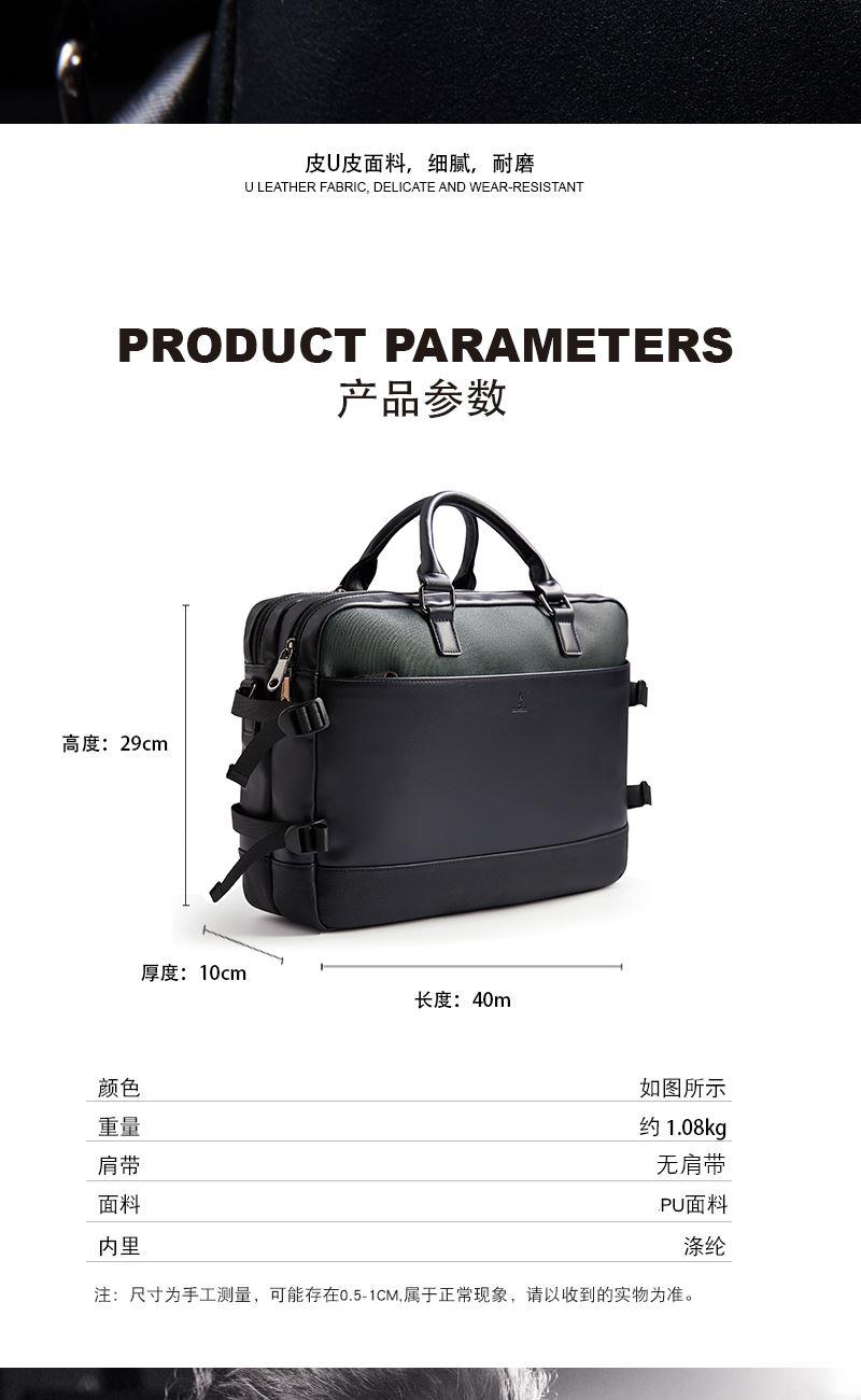 【尺寸】40x10x29cm 【颜色】墨绿色 【质地】PU 【内里】涤纶 【结构】1个隔层