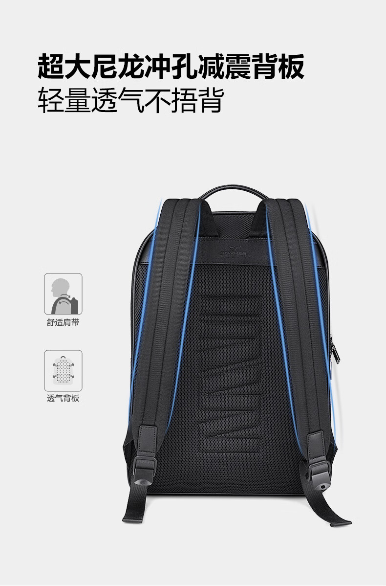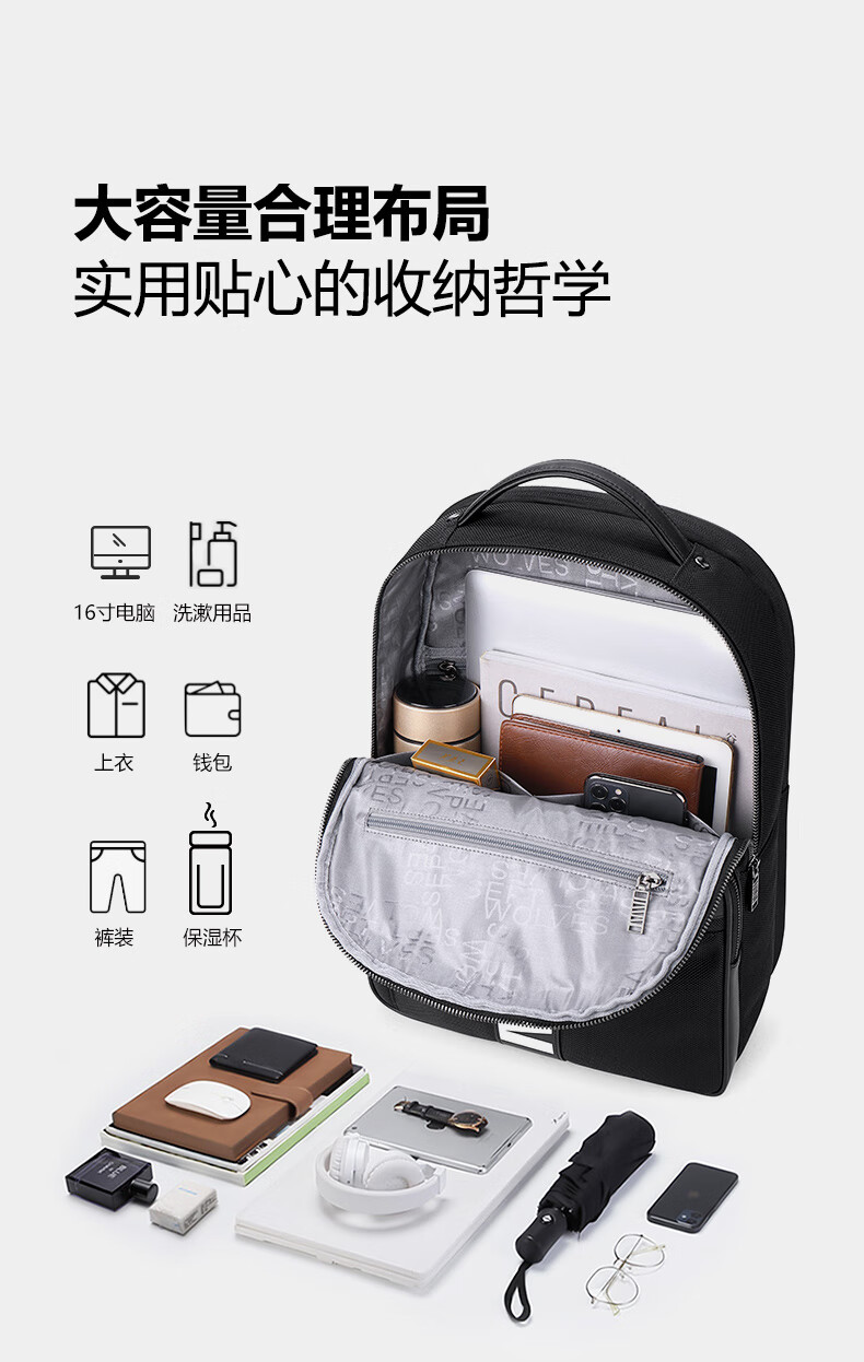 类别:背包 外部材质:织物 闭合方式:拉链 规格:310x155x410mm 容纳电脑尺寸:15.6英寸 风格:通勤风 商务风 携包出行,旅途无忧,立体挺括包型兼顾时尚外观与功能性,轻松驾驭多种都市出行场景 内里大容装载,多层收纳空间,满足多样收纳需求,轻装出行,采用高密度织物面料,防刮耐用,防泼贱,轻松应对泼水,3D透气蜂窝设计,柔软减压肩带