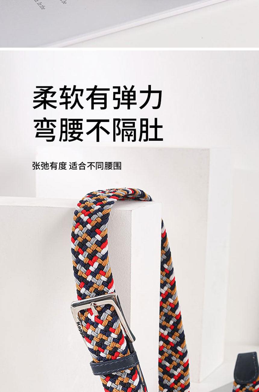 材质:扣头:合金白K扣 带身:丙纶+橡胶 头尾皮:疯马纹皮革 尺寸:105*3.5cm 颜色:黑色 无孔设计,自由调节,松紧自如不勒腰,透气舒适,摆脱皮质 闷热感,让腰间自由呼吸
