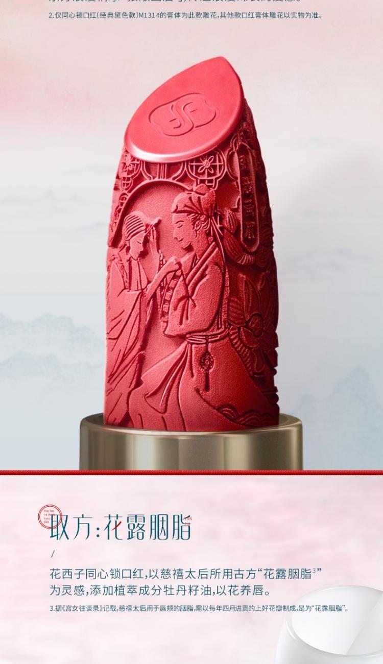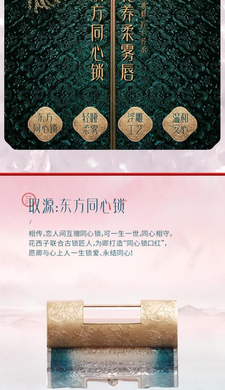 规格:3.8g 卖点: 1.爱情信物:东方同心锁,相传恋人送同心锁,可一生同心相守,将爱意淬炼为资,以锁形资韵,解锁真心爱意; 2.外观升级 高定资感外观;高清显像镜面:补妆 优雅随行; 3.仿陶瓷工艺:光洁如瓷 简洁; 4.匠心工序:精工细作 方成佳品。