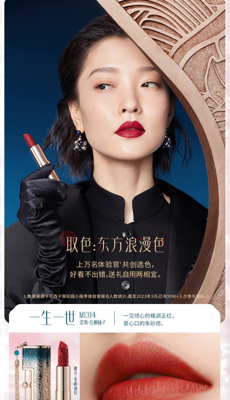 花西子花露养唇同心锁口红丝绒哑雾款C1314一生一世3.8g