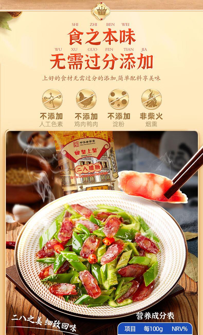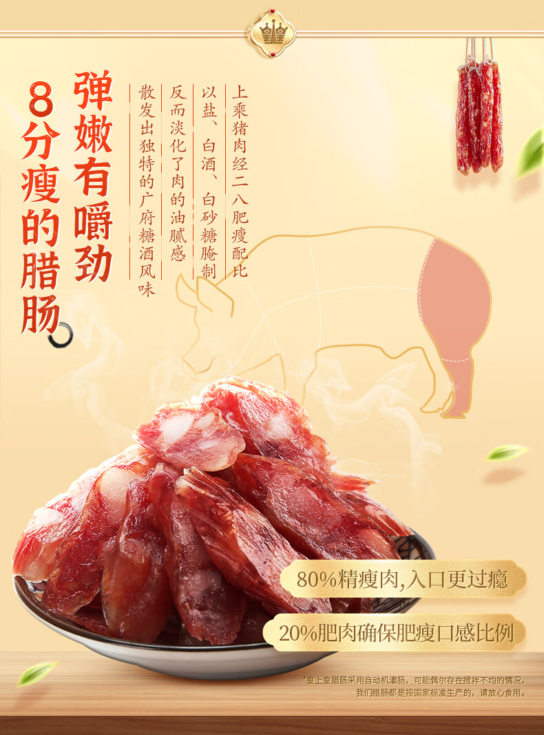 产地:广东 特产品类:广式腊肠 包装形式:袋装 食用方法:烹饪食用 加工工艺:烘干