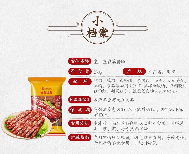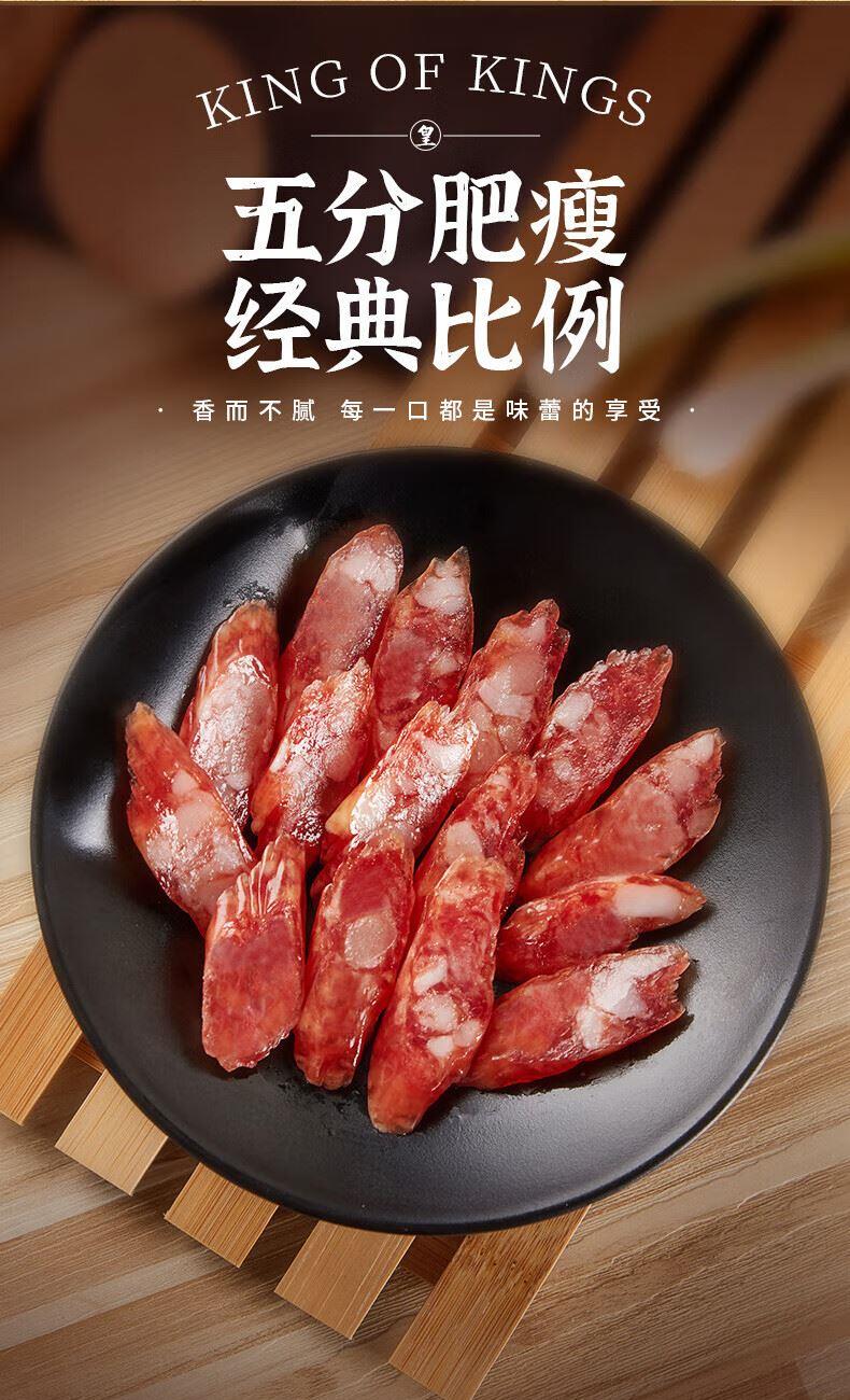 产地:广东 特产品类:广式腊肠 包装形式:袋装 食用方法:烹饪食用 加工工艺:烘干 保质期:360天