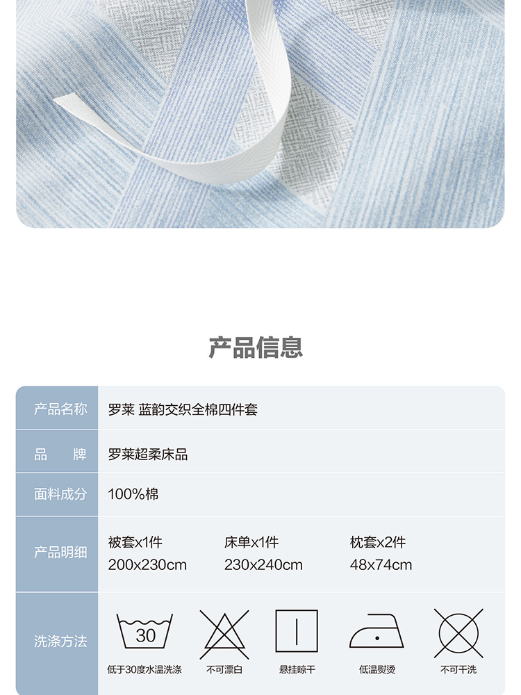 罗莱蓝韵交织全棉四件套200*230cm