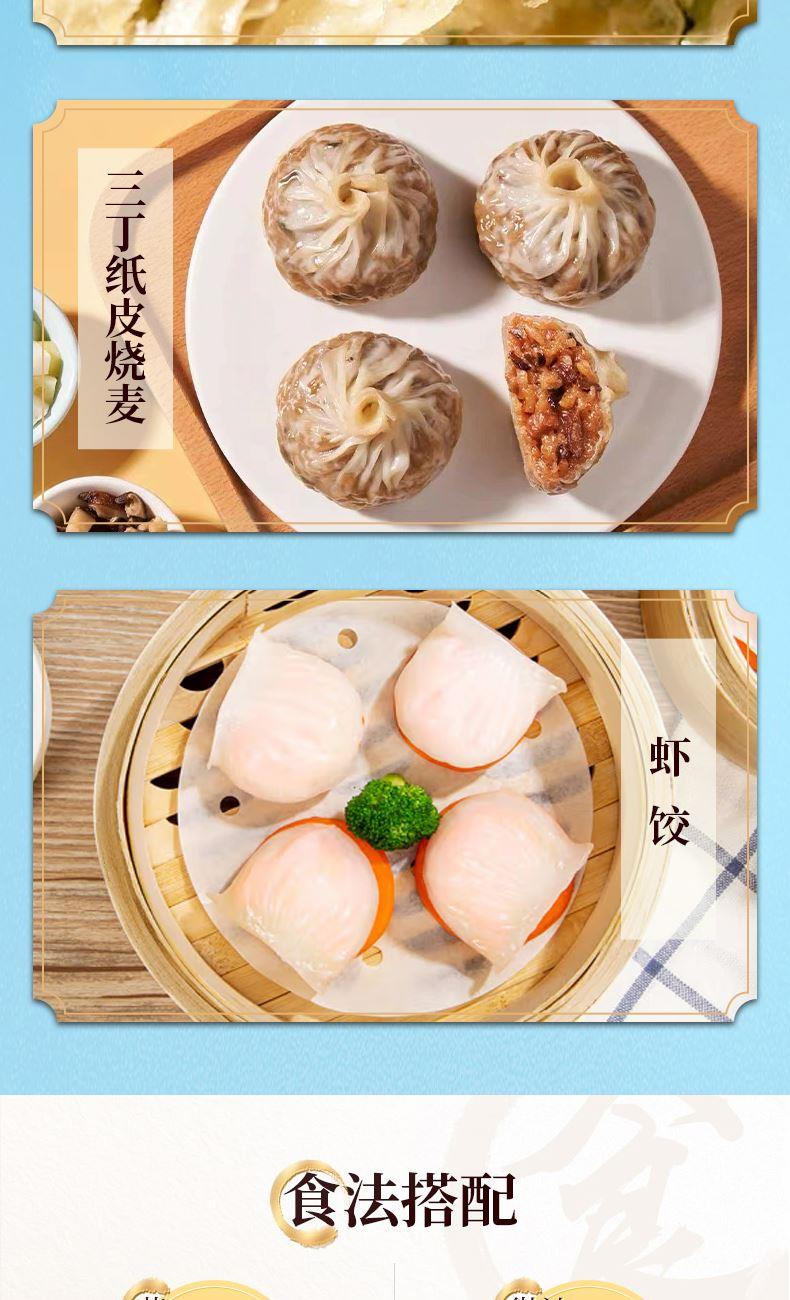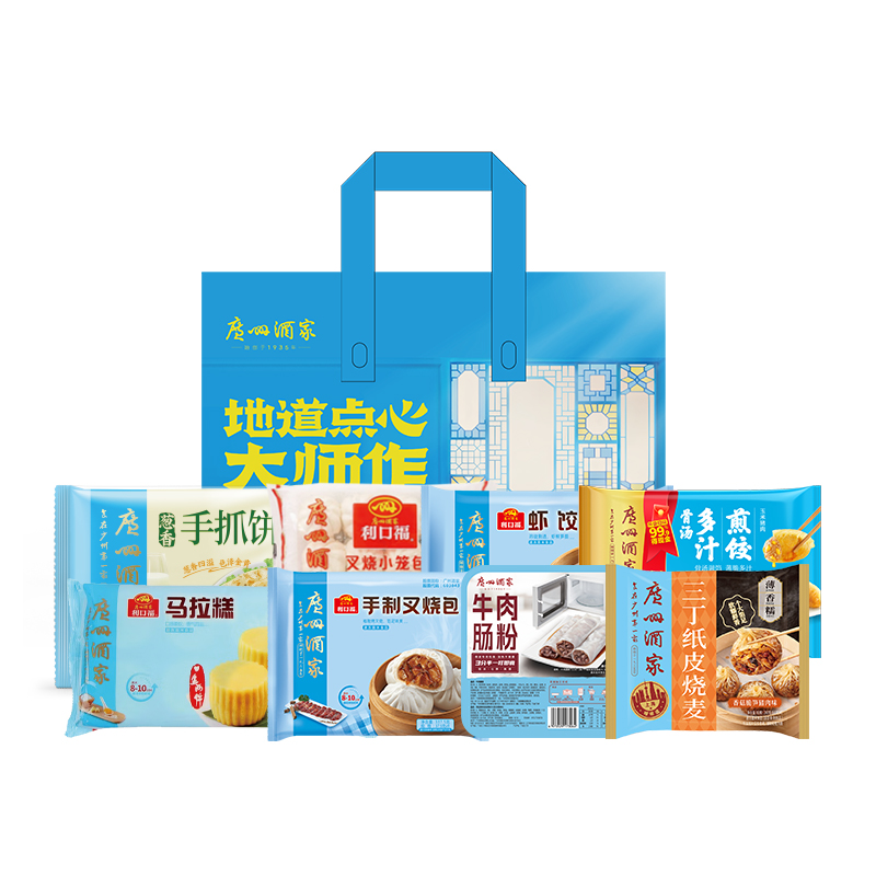 中华粤菜标杆 无需茶楼排队,在家轻松复刻地道广式饮茶体验 省心、放心和正宗的味道。 礼盒尺寸:39.5*28*23cm 内容物:虾饺(160g) 牛肉肠粉(185g) 手制叉烧包(337.5g) 马拉糕(360g) 三丁纸皮烧麦(240g) 玉米猪肉多汁煎饺(300g) 叉烧小笼包(300g) 葱香手抓饼(450g)