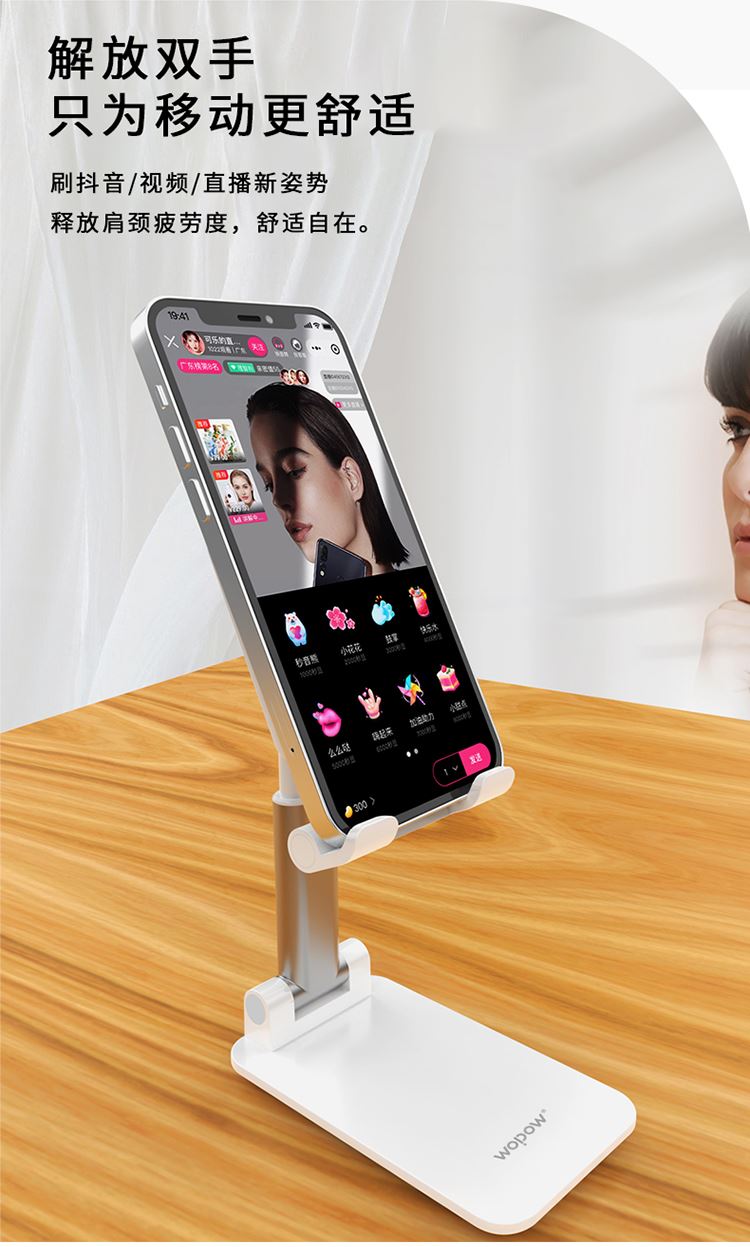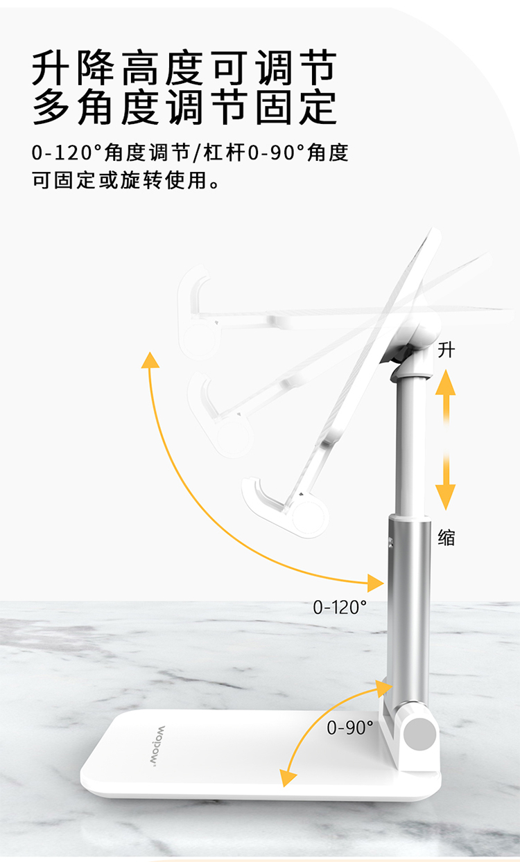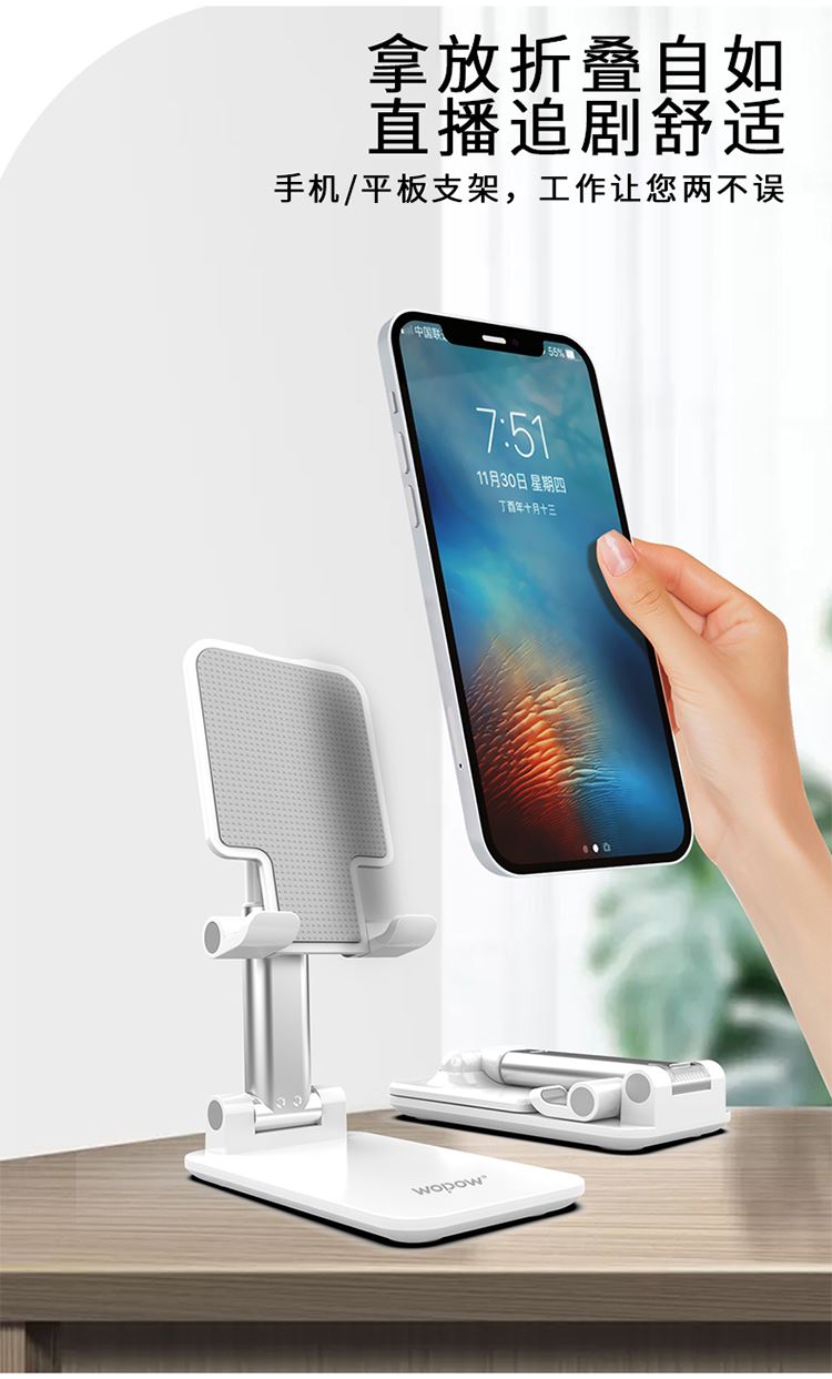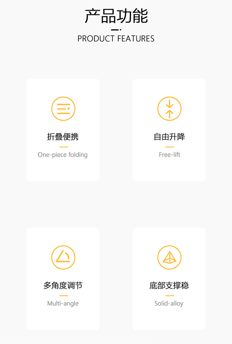 产品尺寸:11*6.6*2.6cm 包装尺寸:27.4*111.5*69mm 产品重量:100g 颜色:白色 材质:ABS+硅胶防滑垫+EVA 可折叠方便携带 多角度调节 自由升降 支撑力大,金属质感 硅胶垫防滑垫