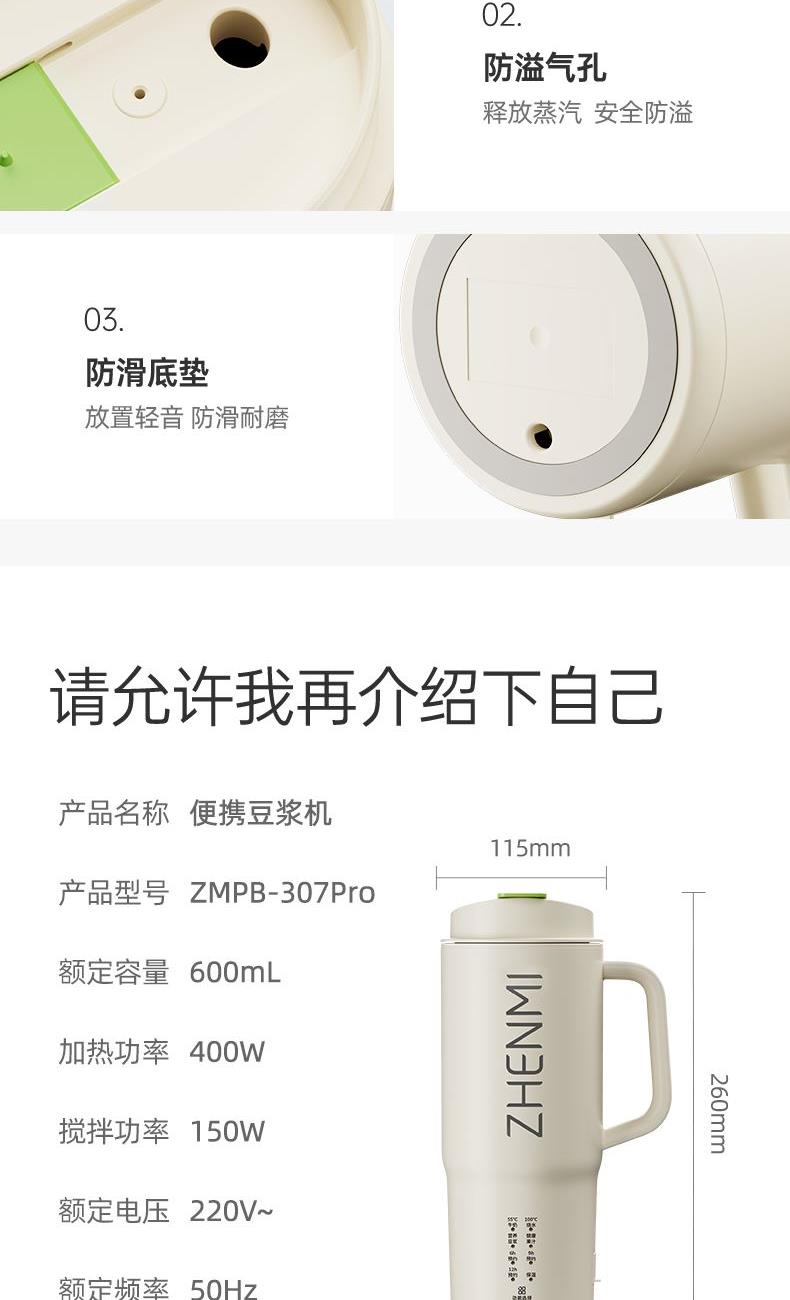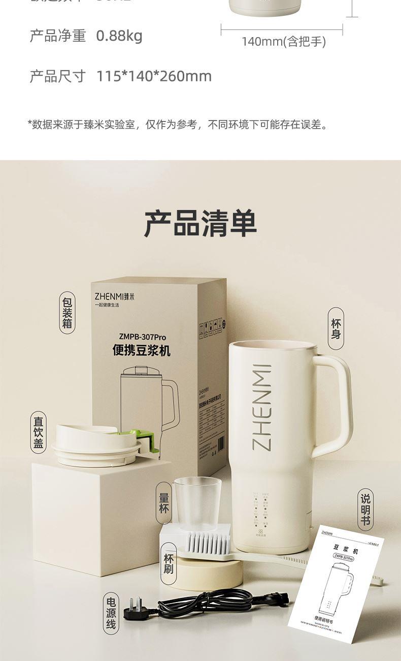臻米便携豆浆机ZMPB-307Pro(珐琅釉内胆)
