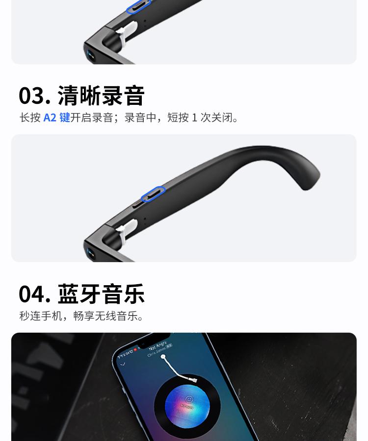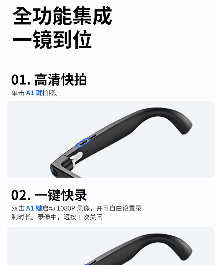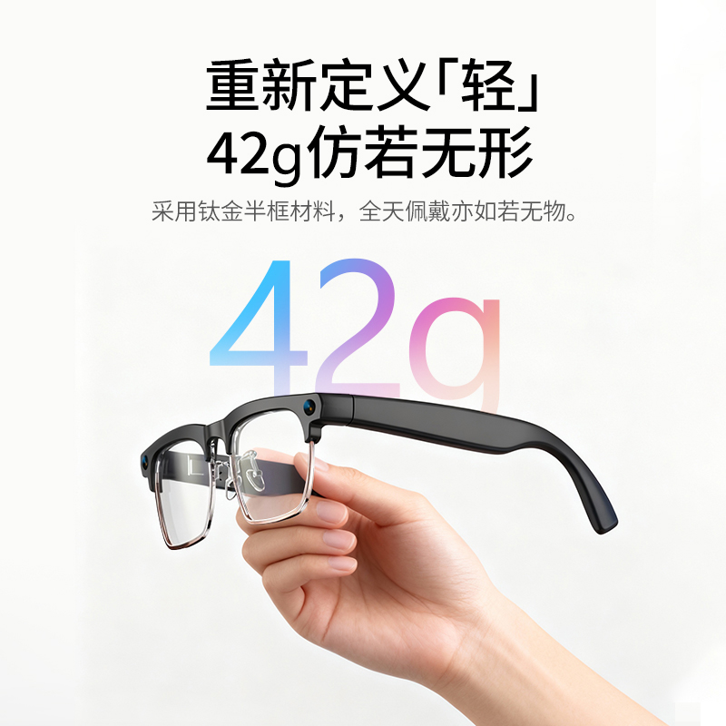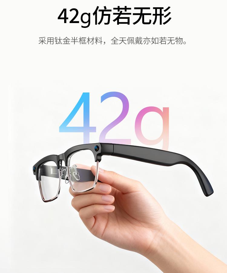 轻量化设计确保佩戴舒适,钛金属框架兼具质感与耐用性。无论是商务办公的高效协同,还是旅行中的随心记录,这款眼镜都能以 “科技 + 实用” 的双重价值,成为你的随身智能搭档。