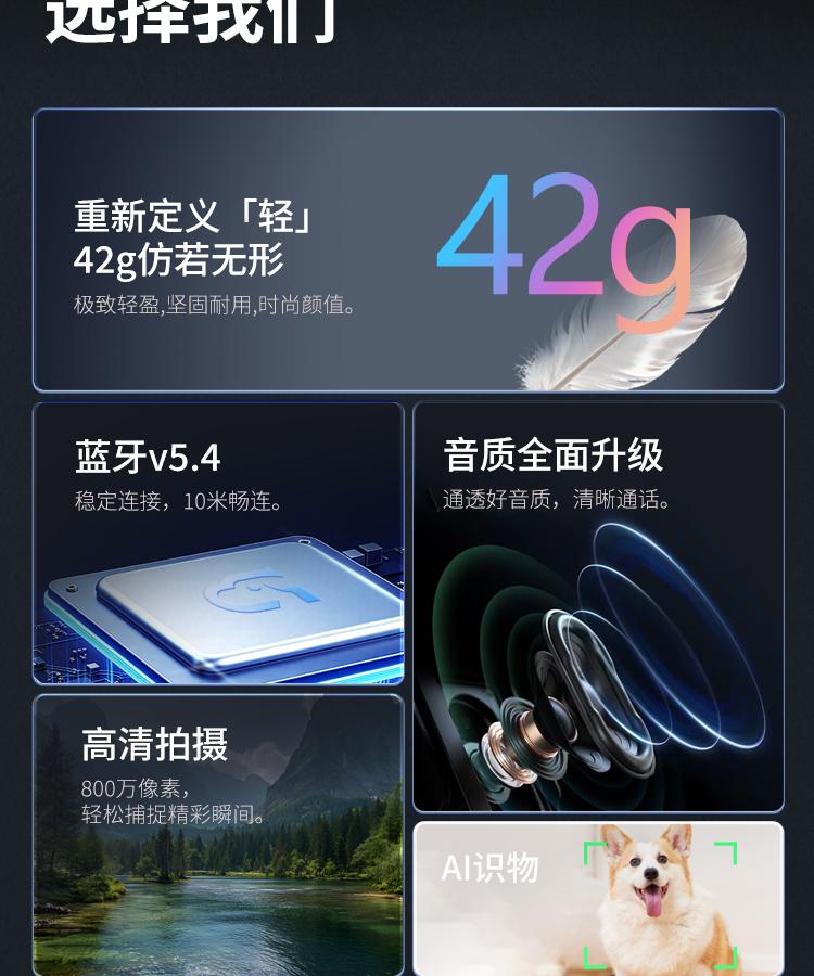 AI 翻译与语音功能更懂高频需求:内置多语种实时互译,国际谈判、境外旅行时开口即译,打破语言壁垒;搭配开放式扬声器,接打电话、听音乐不影响环境感知,通勤族、商务人士都适配。