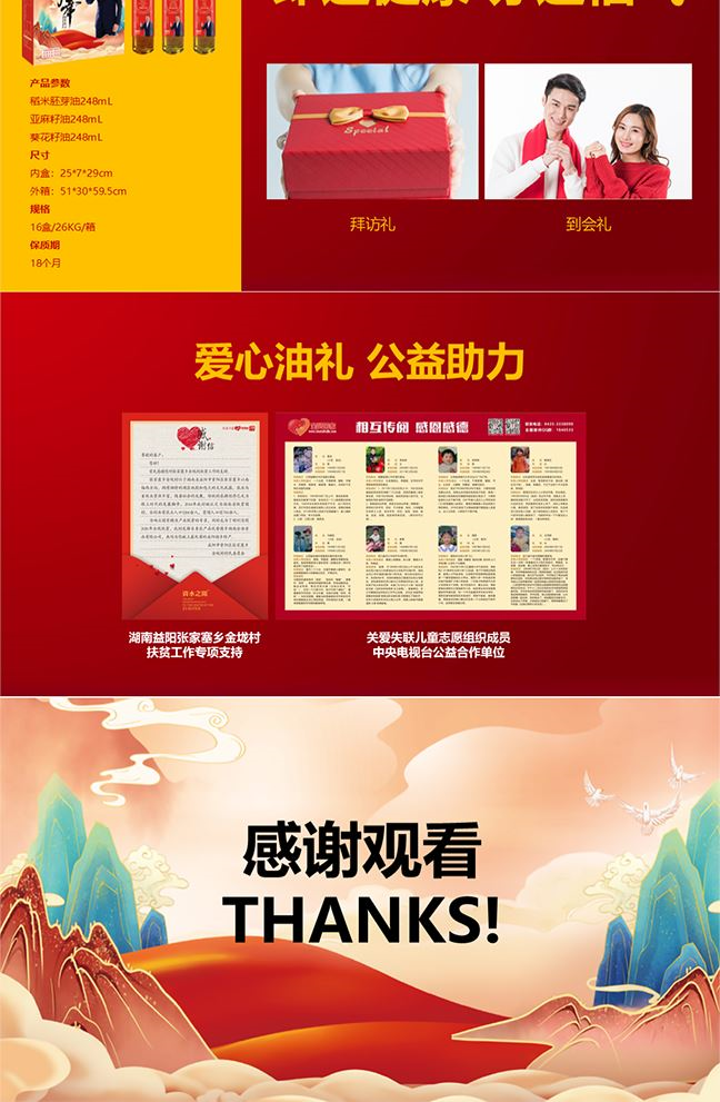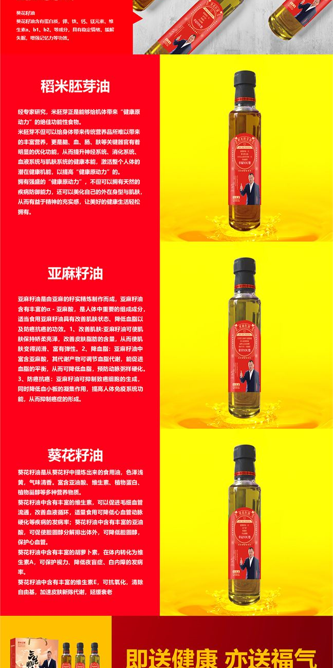 三生有幸 稻米胚芽油248毫升*1瓶 亚麻籽油248毫升*1瓶 葵花籽油248毫升*1瓶 尺寸 (内盒)25*7*29cm (外箱)51*30*59.5cm 规格 16盒/26KG/箱