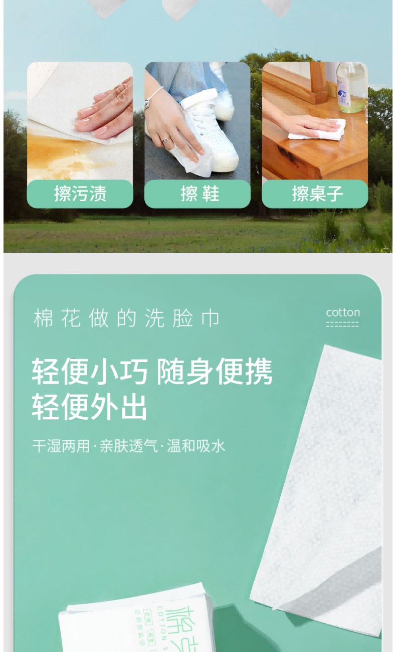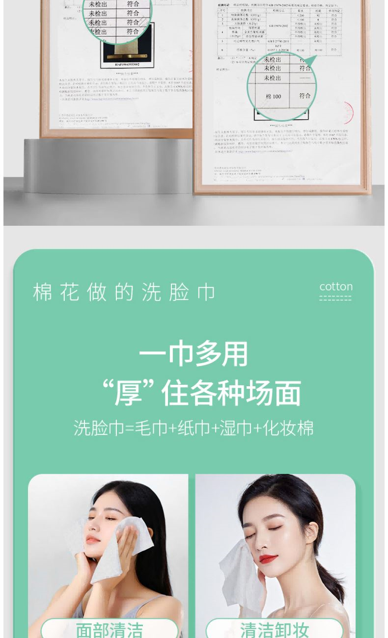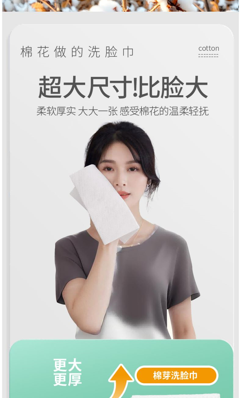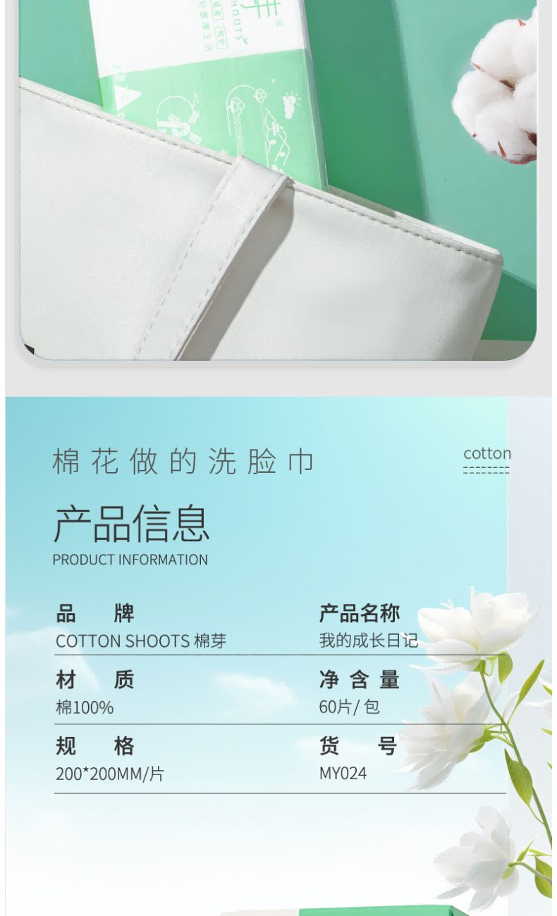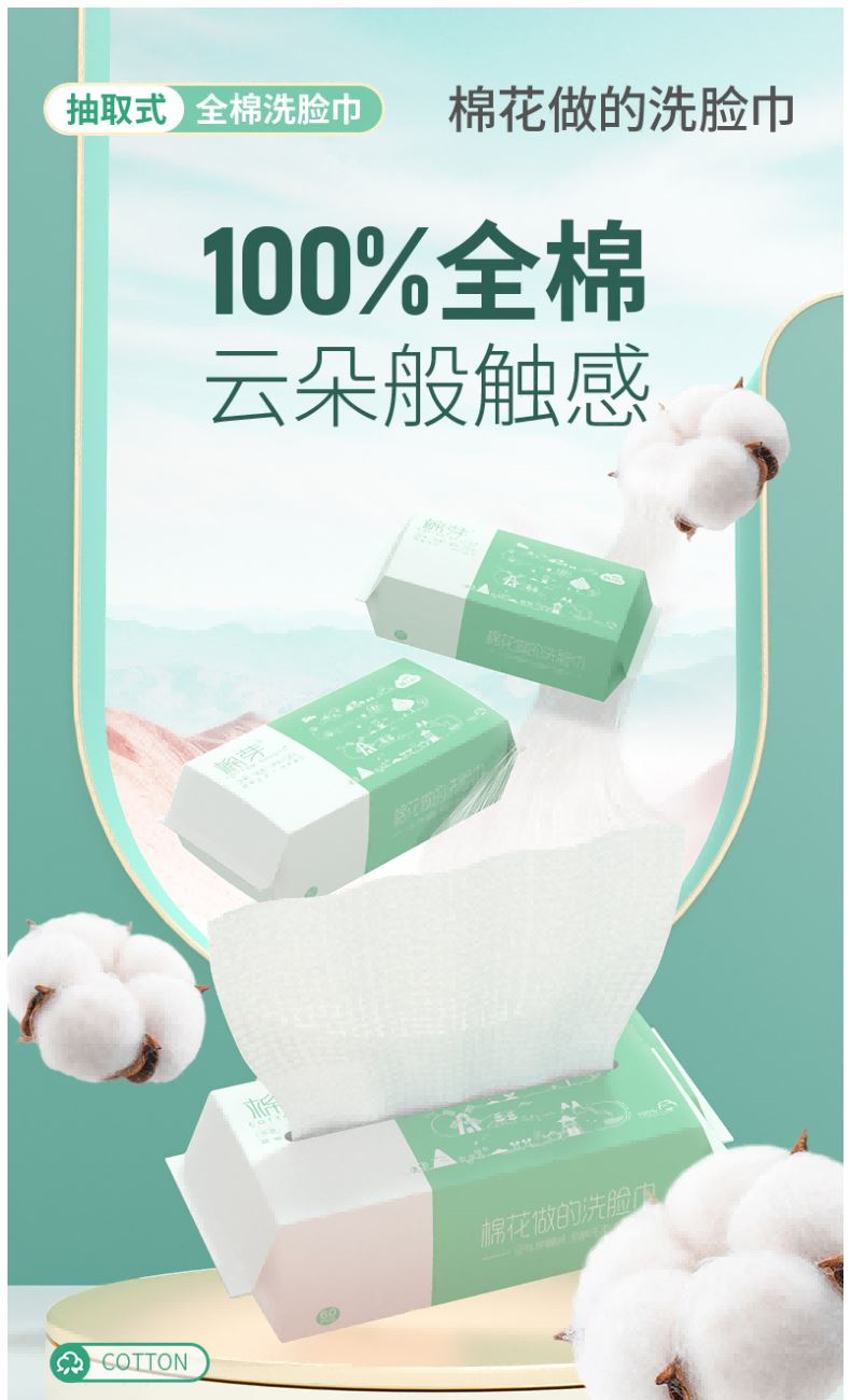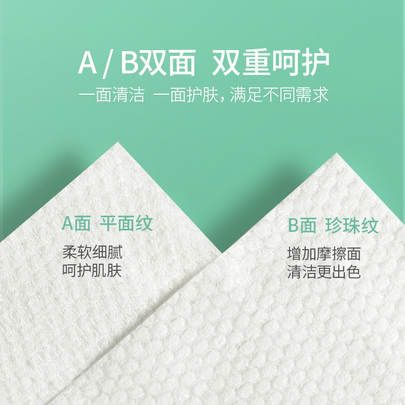 材 质:纯棉 尺 寸:20X20cm 净 含 量:60抽/包*4包 克 重:70g 核心利益点: 1、纯棉,无添加,不易掉毛,不易掉絮。 2、加大加厚(对比市场纯棉珍珠纹款)。 产品区隔点 : 双面纹理,珍珠纹清洁力更强。