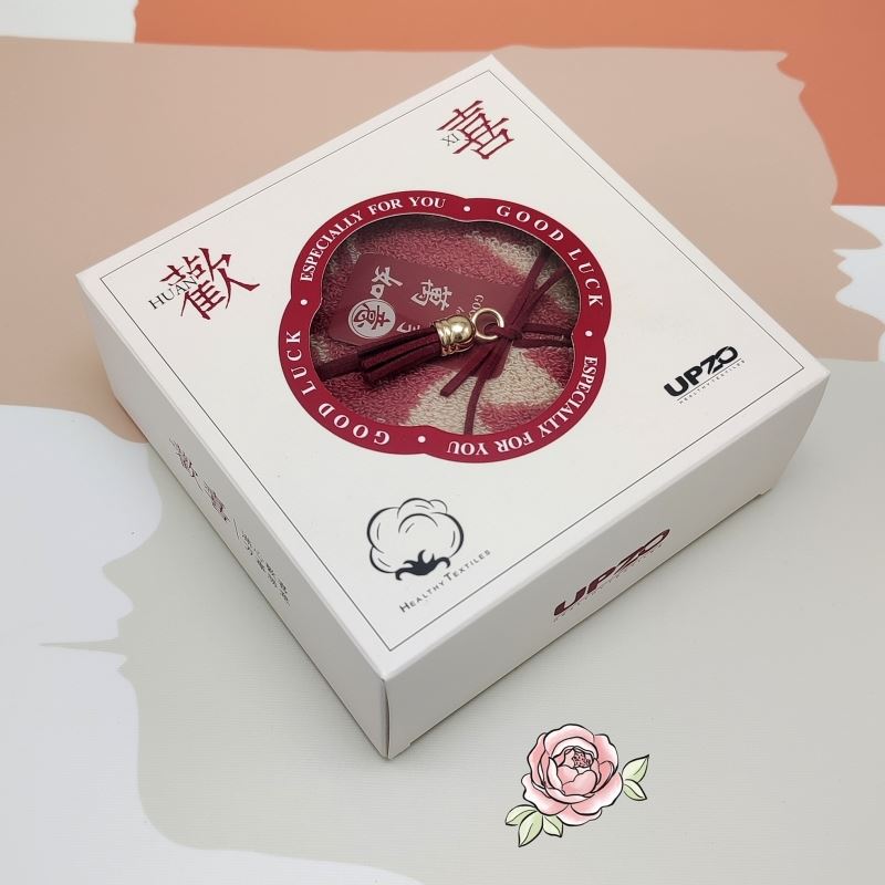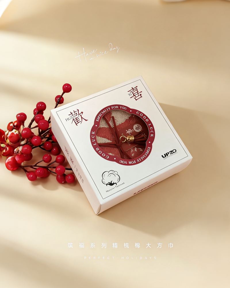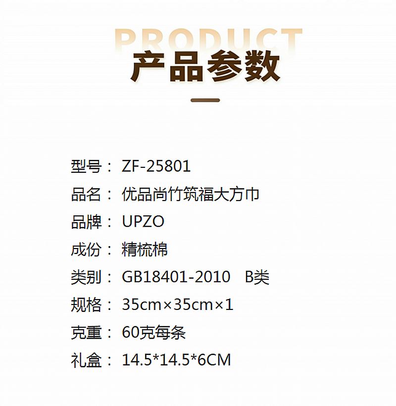 型号: ZF-25801 成份: 精梳棉 类别: GB18401-2010 B类 规格: 35cm×35cm×1 克重: 60克每条 礼盒: 14.5*14.5*6CM 祝福融入毛巾与礼盒设计