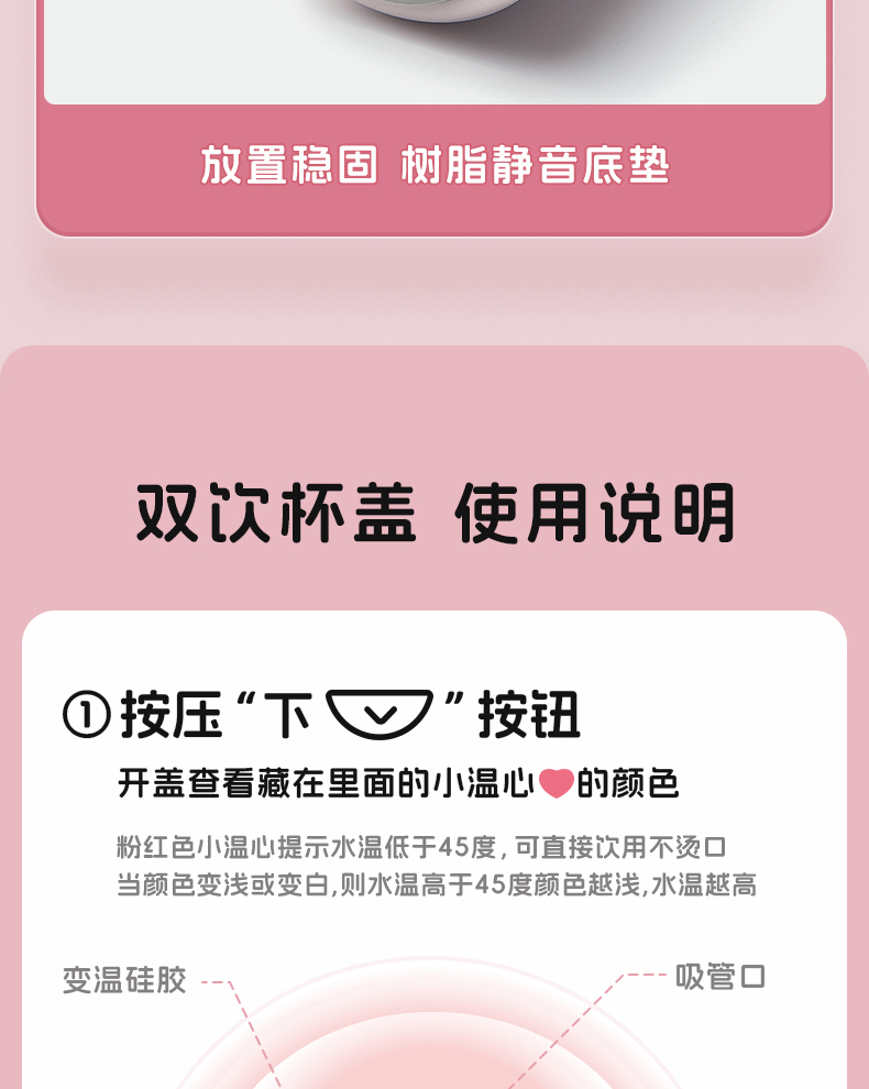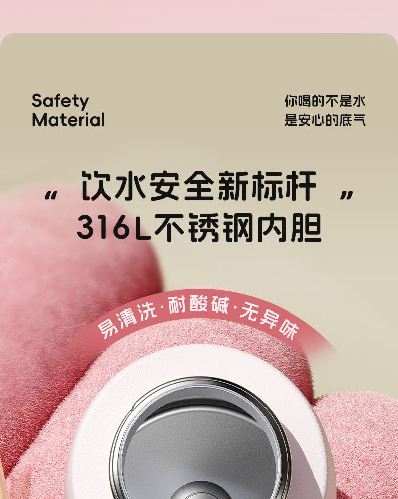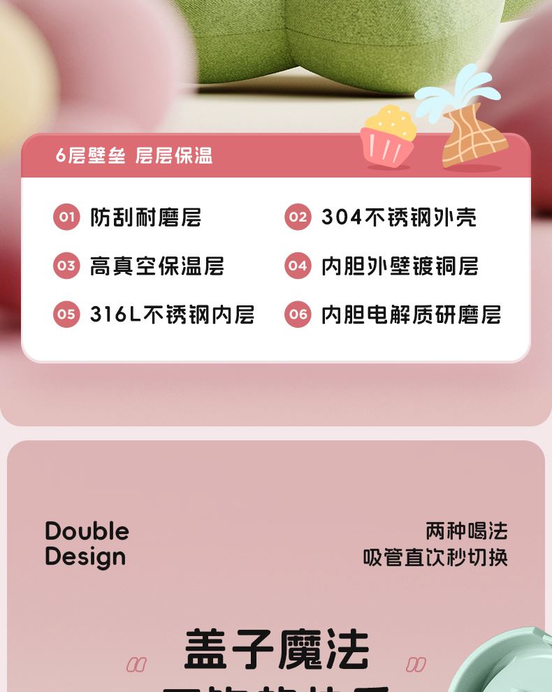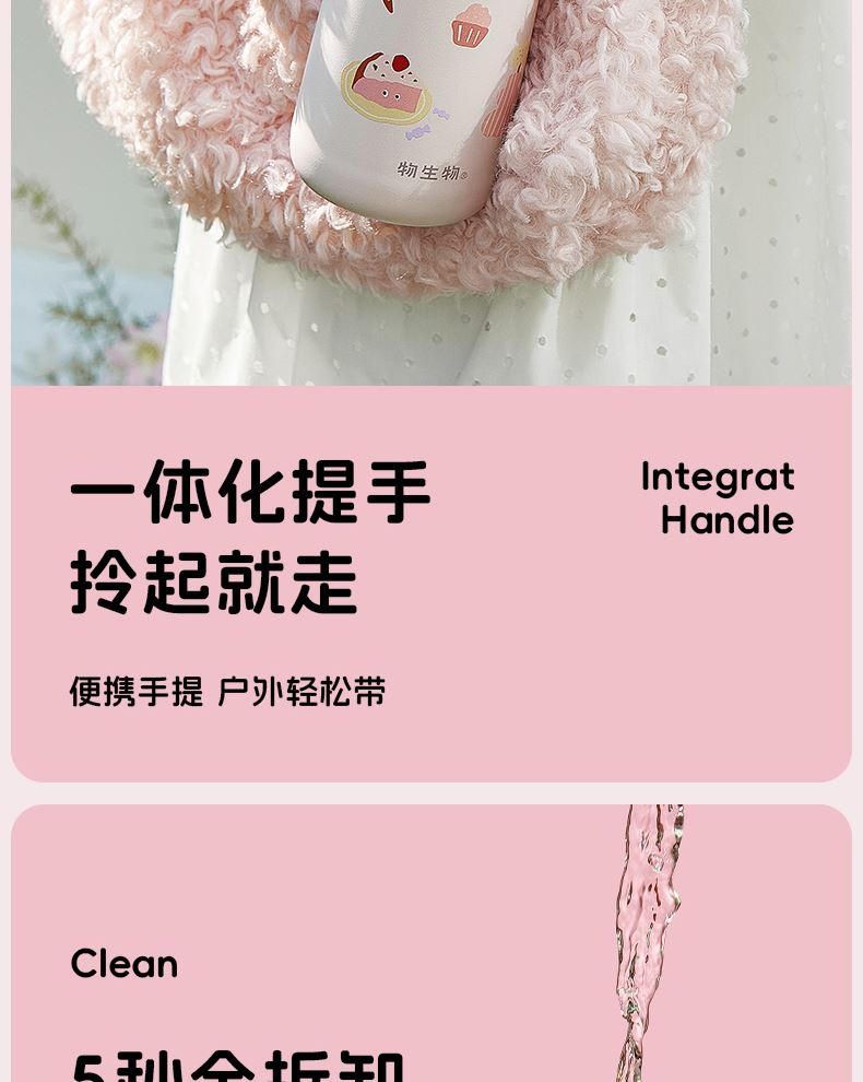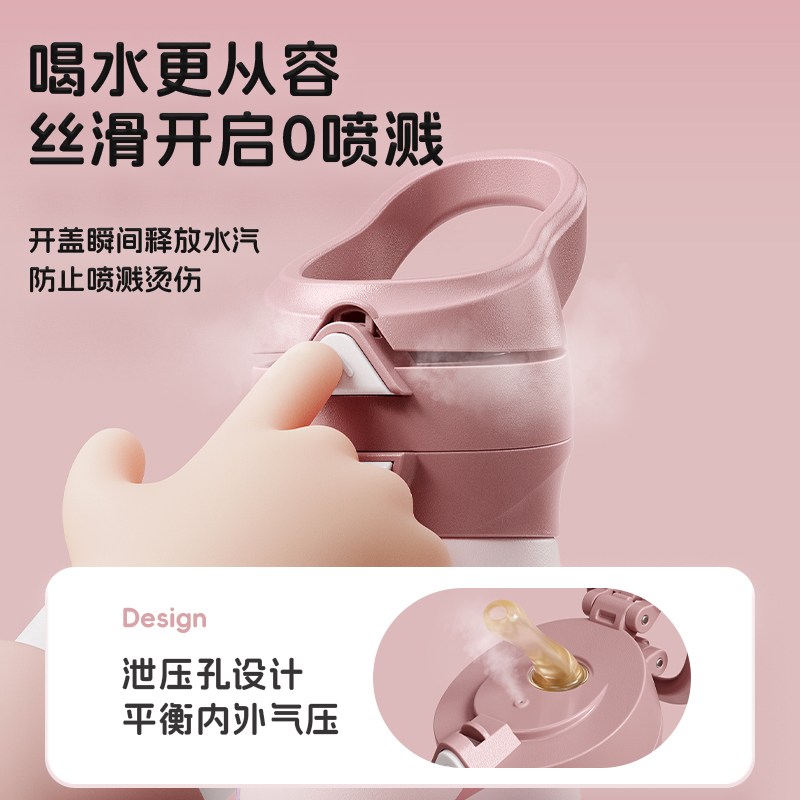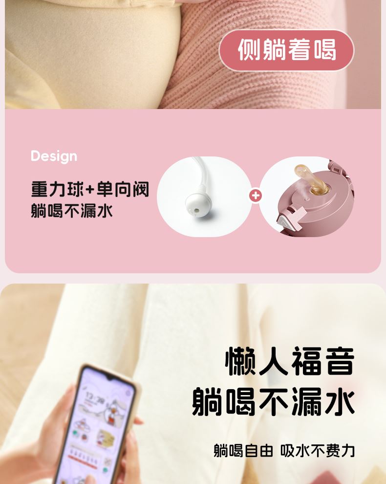 型号:JV012529-0500 颜色:焦糖雾粉 格林绿咖 材质:316不锈钢 容量:500ml 1:躺喝不漏水,三种喝法 2:316L不锈钢内胆易清洗,耐酸碱,无异味 3:母婴级硅胶吸嘴耐啃咬不易呛喝水更轻松