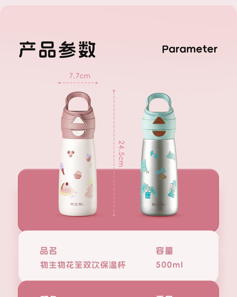 物生物花笙双饮保温杯500mlJV012529-0500