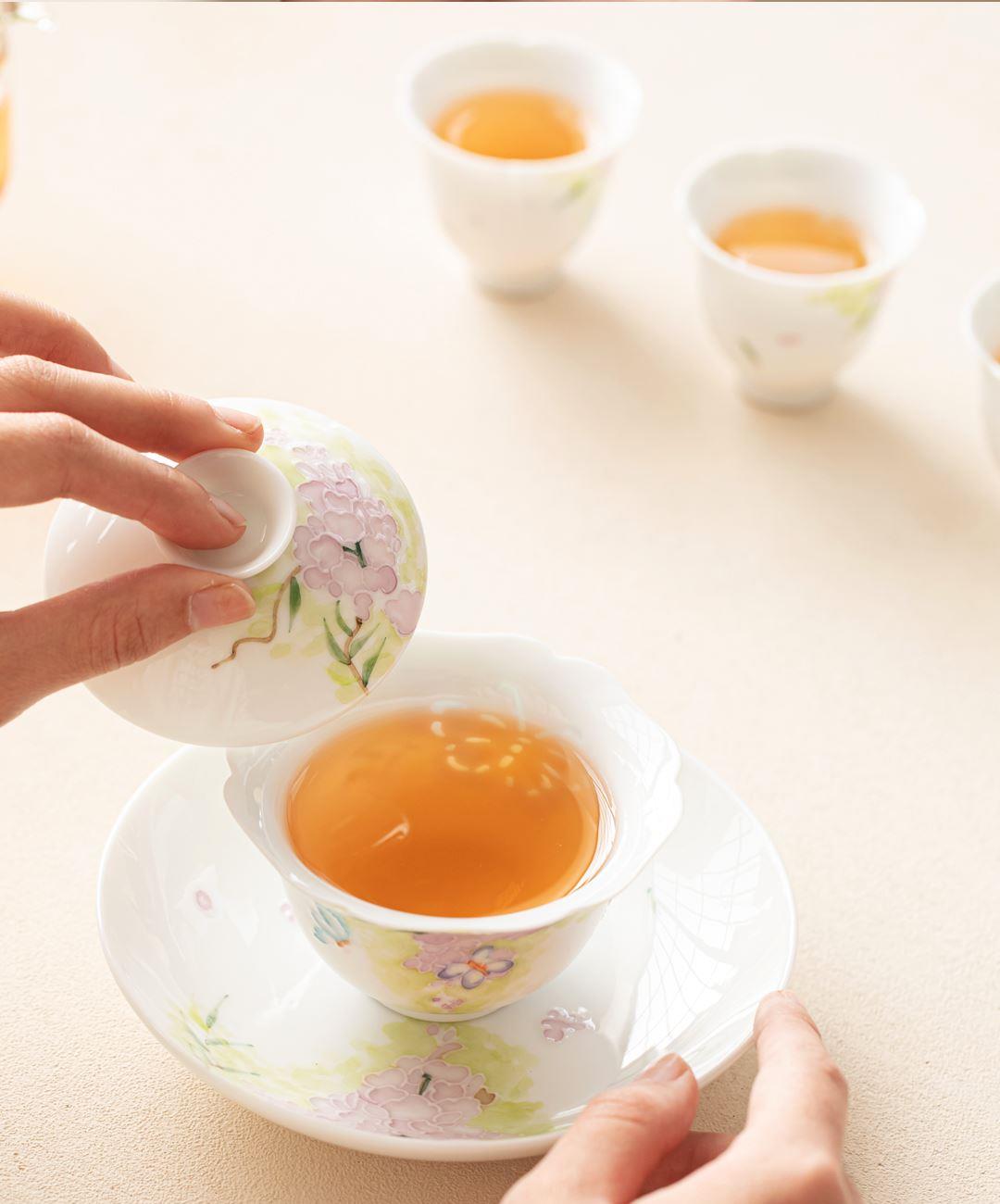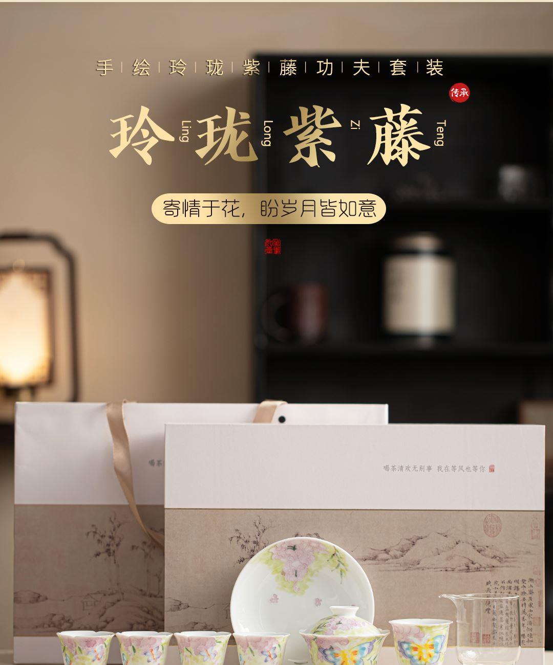 尾桥下窑节日伴手礼有田烧手绘玲珑瓷紫藤花功夫陶瓷茶具套装