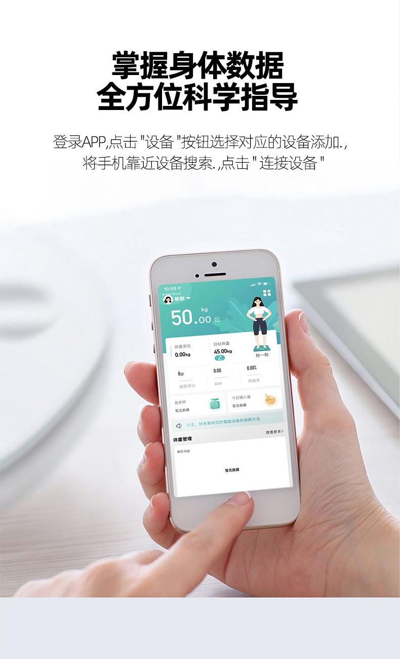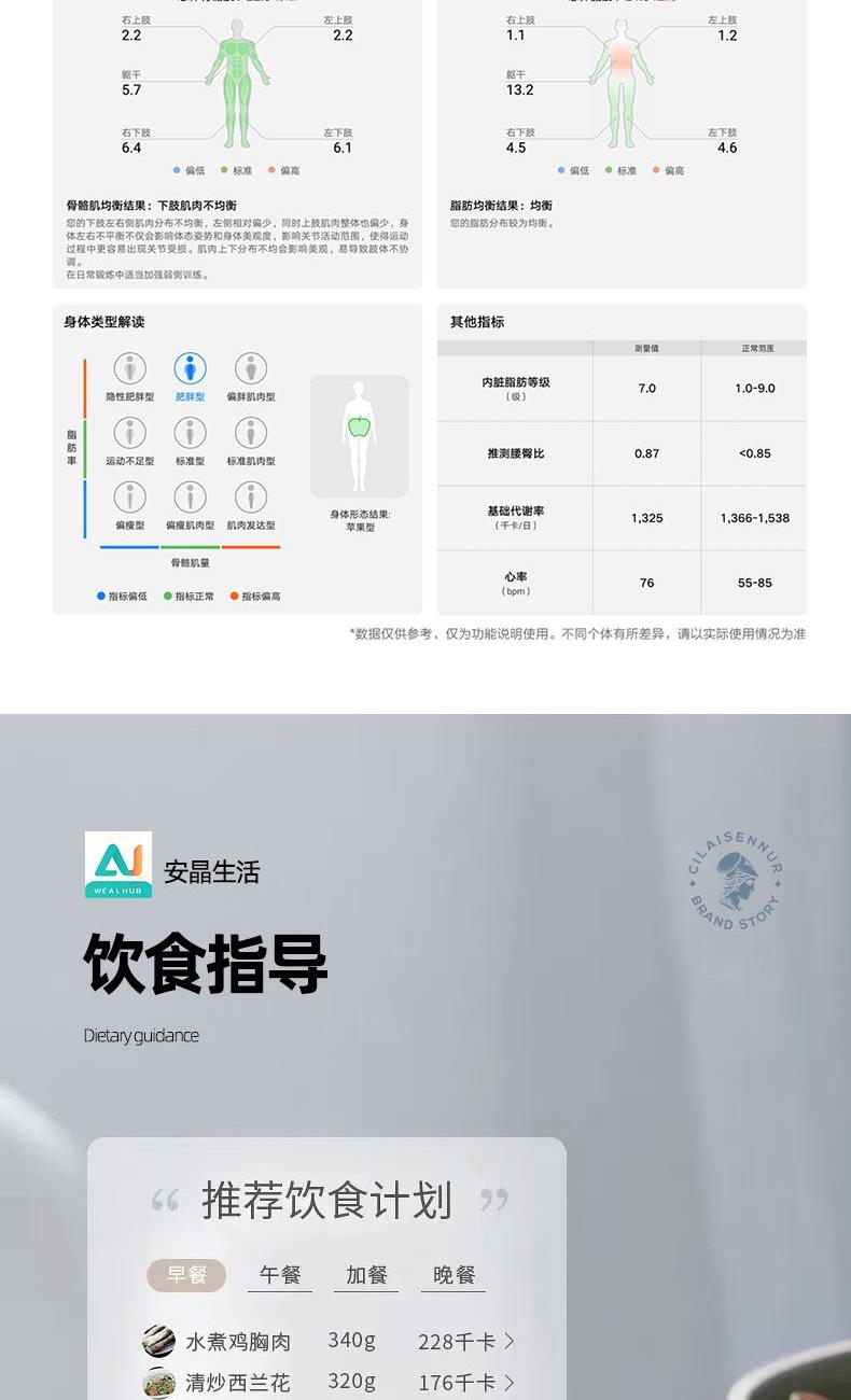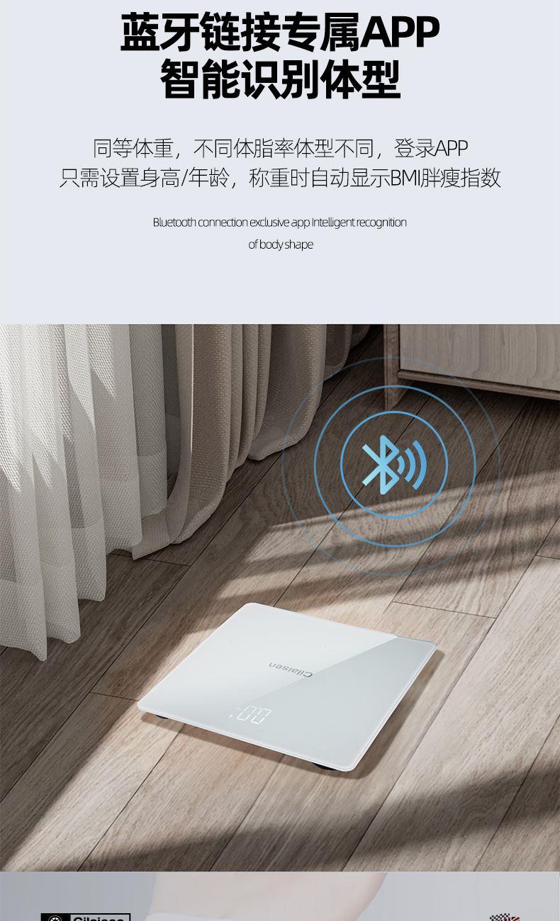 1、蓝牙链接专属APP(安晶生活),智能识别体型