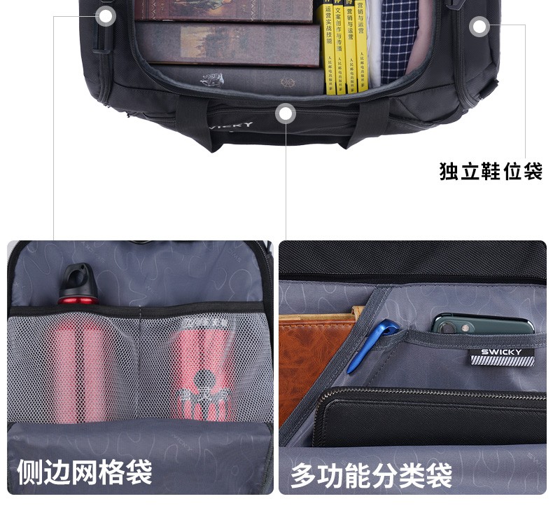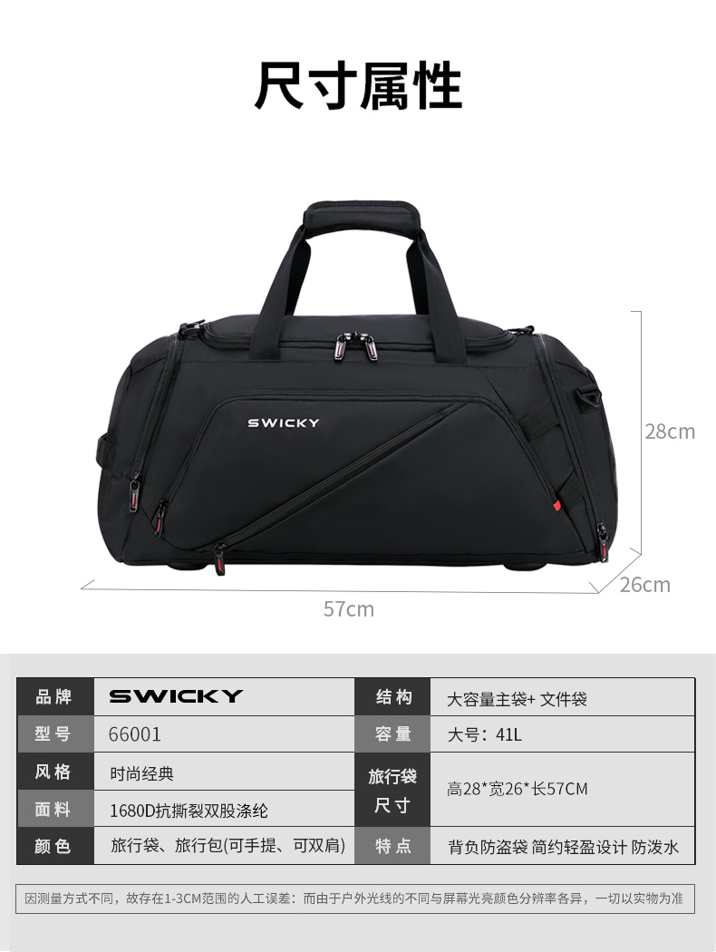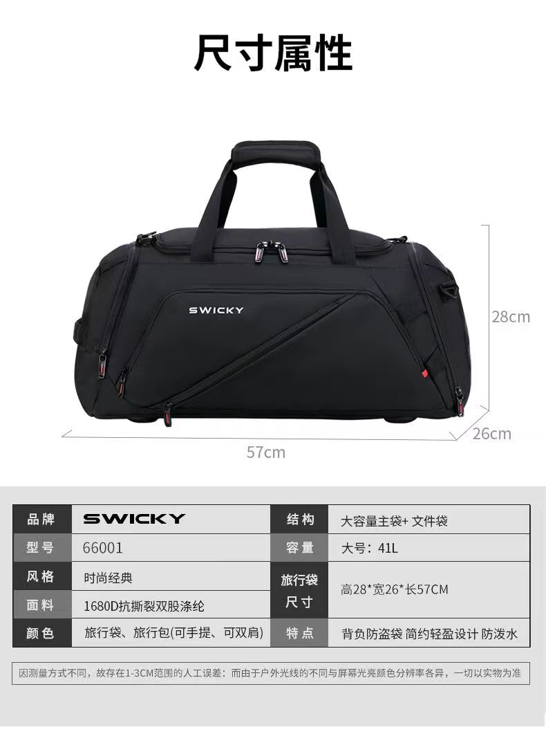 SWICKY旅行包旅行袋大容量健身包66001黑色
